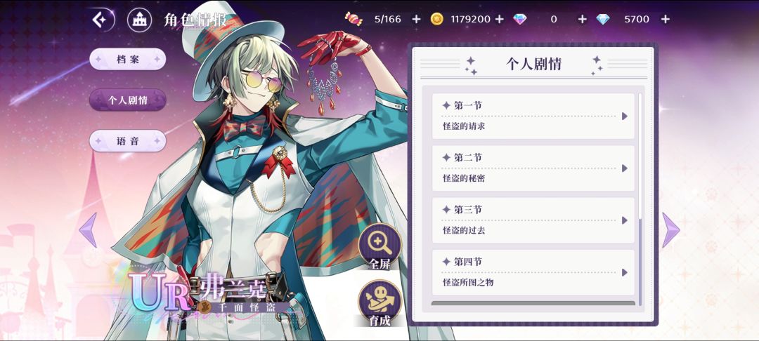 因为对怪盗很难抵抗的被吸引,所以努力的肝了下终于得到了辣个男人,就习惯性的解锁了前四章剧情的好感。 但是这个剧情发展一开始令人感到奇怪,一般来讲外婆想看孙媳这种剧情还蛮老套的,第一感觉是不信的,但是二刷发现他的表情确实很失落。后来去了之后发现从仆人口中听说他跟小时候的少爷性格爱好都完全不一样,但是本人表示从害羞内向的小男孩变成活泼开朗的怪盗有什么不好。 接着跟外婆相处发现外婆也是一个爱恶作剧的人,