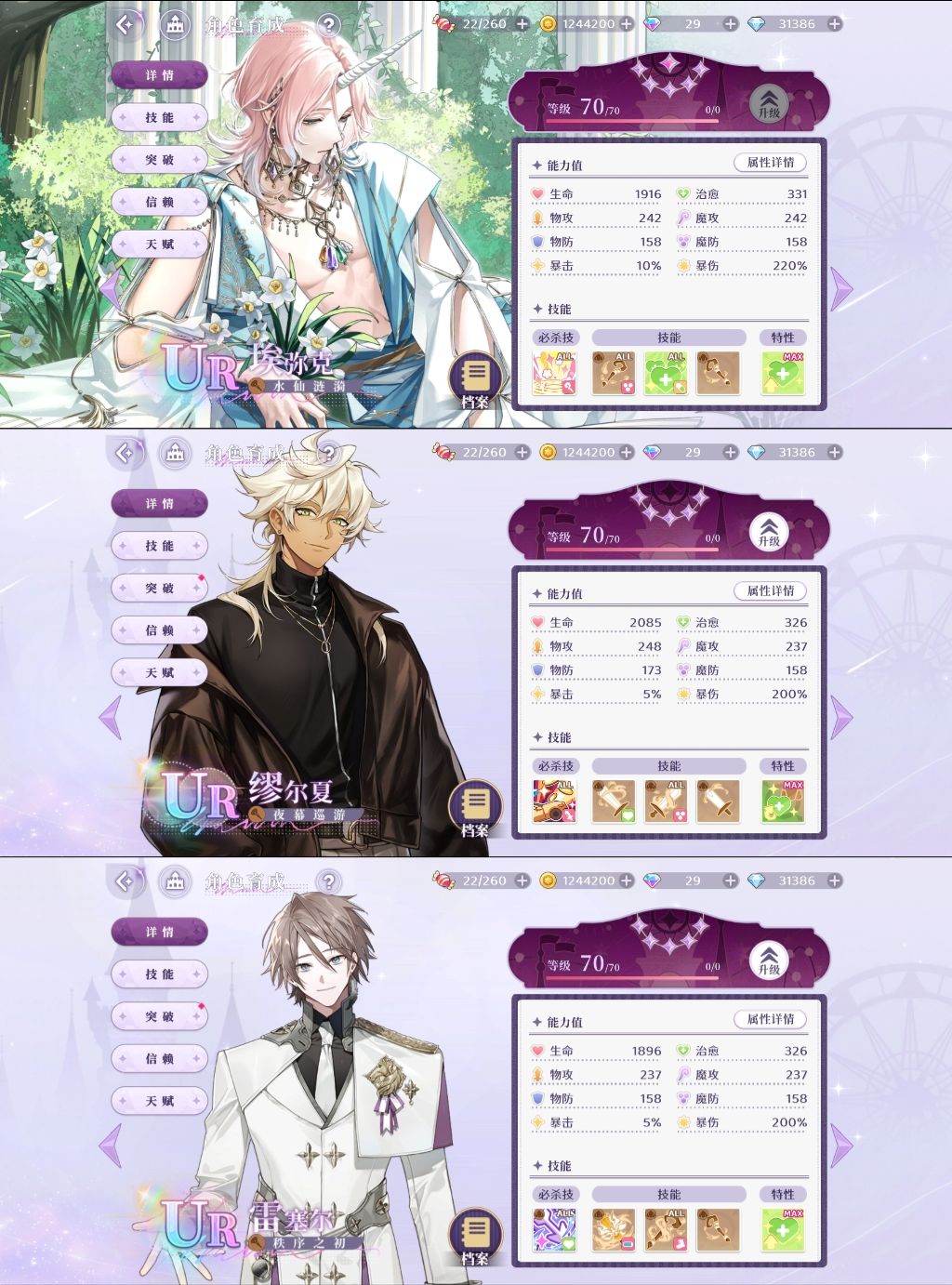 ✅由于本人缺少部分卡牌,❗没有练盾卡,所以没有提到的卡无法为大家提供建议。 ✅幻影废墟BOSS关大部分需要单攻 / 减防角色,所以群攻角色更适用于非BOSS关卡,并不是毫无用处。 ✅🔥为强推角色,✨为表现较好,可以养成角色,所有角色的测评仅供参考❗ 🍀 辅助 🍀 🌙 UR 缪尔夏🔥:必杀技回血+提高物攻魔攻,小技能回血+物防。全游唯一T0辅助,泛用性极高。 🌙 UR 百幽✨:三个回血技能,且能够解