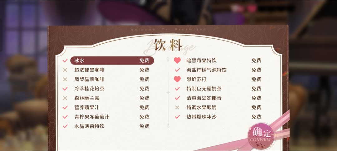 有待完善,可以给大家做一个参考 🔶料理 暂时未试出特别喜欢的料理 辣味龙虾汤❌ 🔶饮料 森林幽兰露➕❤️ 🔶选项选择 如图(不完整)#攻略