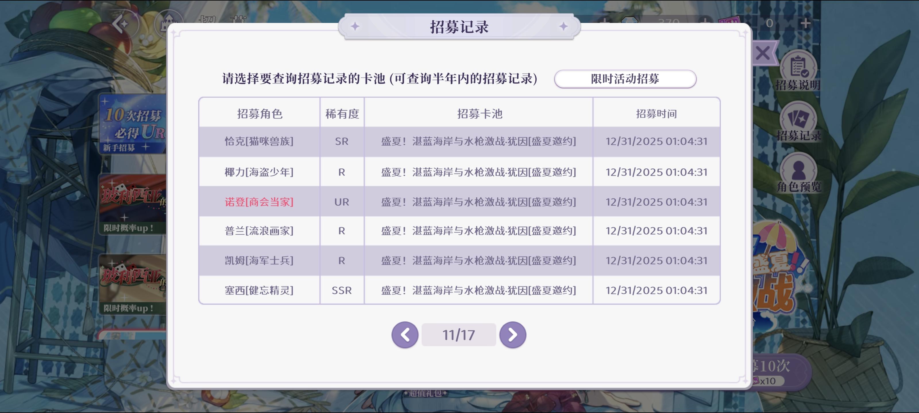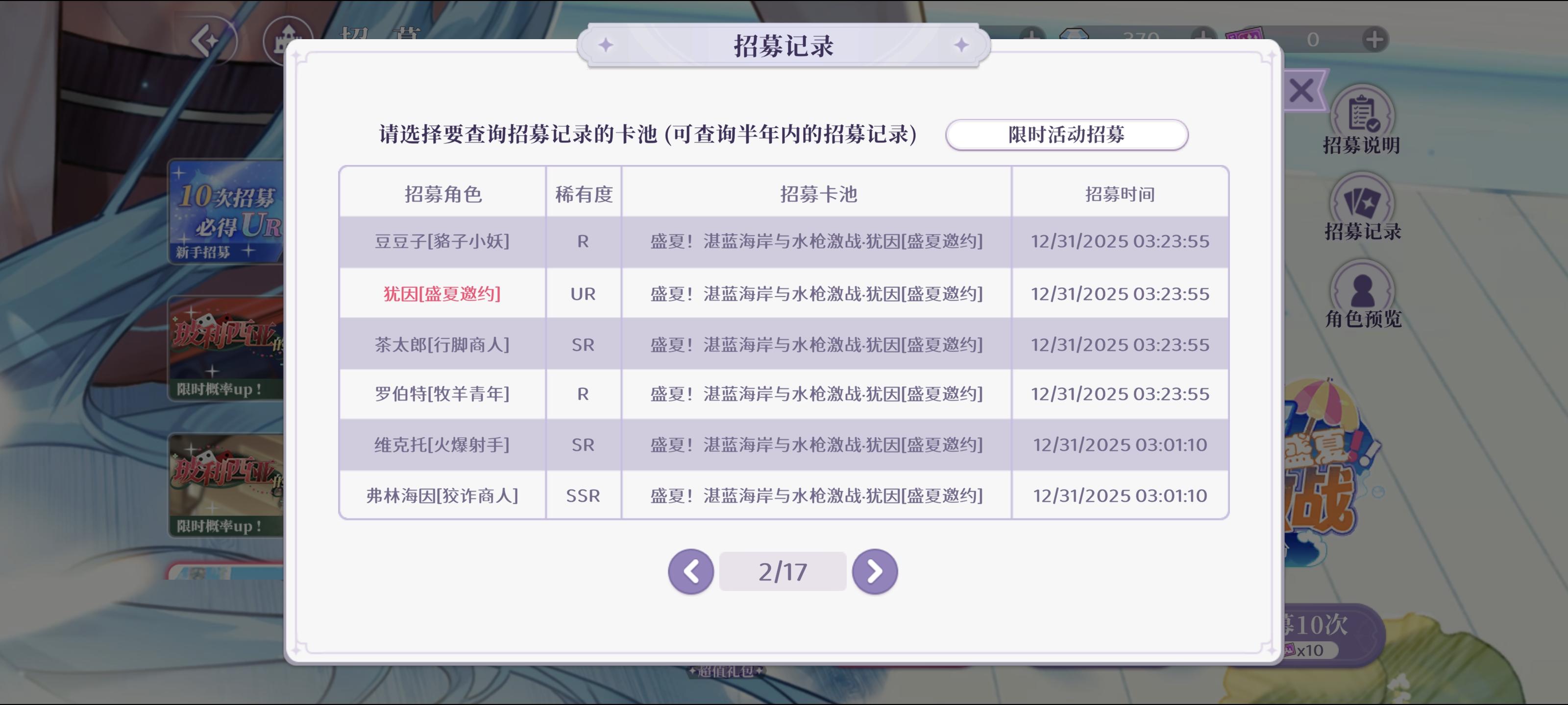 昨天23点半闲的没事看到公告,这个犹因返厂了,一看第二天凌晨四点就要结束活动了,赶紧下载试试有没有机会。我以前下载过这游戏,但是新手剧情看一半就卸载了,所以第六张截图能看到,七天任务都解锁了,但是才登录了两天。我就一直肝主线,然后把材料关卡能打的全打了,第一次ur歪了,真的心梗,只能继续肝,全程跳过跳过跳过哈哈哈,后边好不容易肝到了,要晕过去了。第三张截图到第五张截图能看到抽卡时间,全是今天