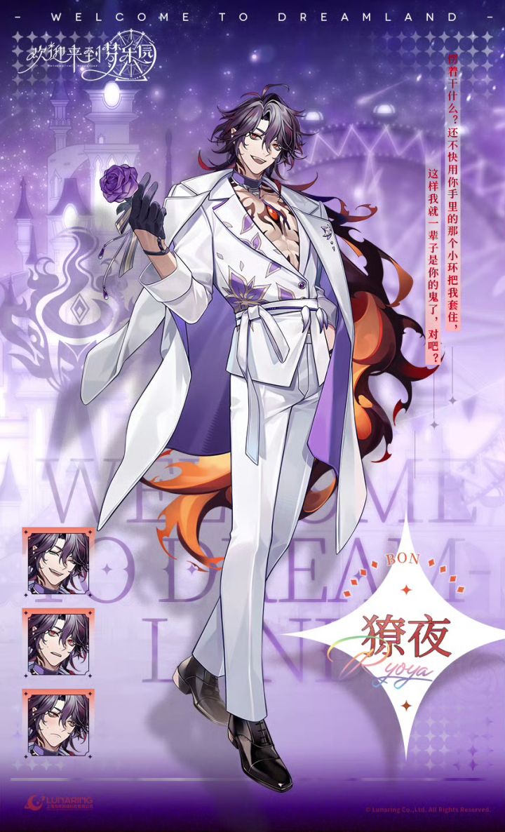 《欢迎来到梦乐园》全新迷你活动「专属时刻·獠夜」将于3月11日正式开启,为玩家带来角色专属的全新内容。 本次活动将开放「专属时刻·獠夜·独家秘闻」剧情与专属内容,本次登场角色为獠夜[灼红誓约],官方同步公开了角色相关台词。从造型上来看是不错,但就是太严实了。我不喜欢这种裹得严严实实的东西。 信息来源:《欢迎来到梦乐园》官方 本次獠夜专属迷你活动延续了游戏轻松有趣的风格,角色台词直白又贴