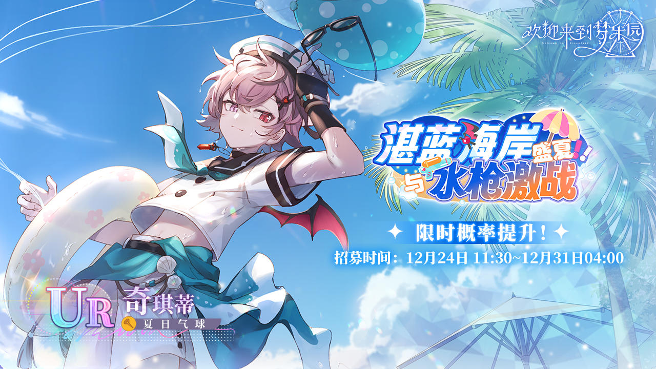 ✨「往期活动收录」系统新增收录活动「盛夏!湛蓝海岸与水枪激战」!-「盛夏!湛蓝海岸与水枪激战」活动关卡常驻开放-「盛夏!湛蓝海岸与水枪激战」赠送SSR 厉炎 [炽热烤串]及其他活动限定装饰奖励,常驻上架复刻商店- 黄金沙滩与水上乐园·UR 犹因 [盛夏邀约]招募概率限时提升- 黄金沙滩与水上乐园·UR 奇琪蒂 [夏日气球]招募概率限时提升- 犹因 [盛夏邀约]、奇琪蒂 [夏日气球]心绪时
