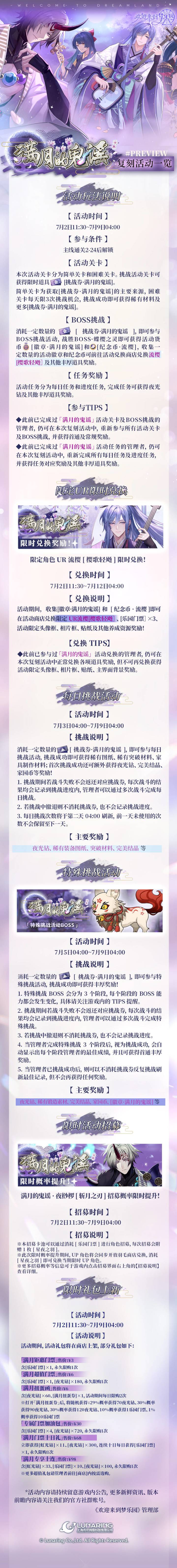 ✨复刻活动丨「满月的鬼谣」复刻活动详情一览夜樱枝颤随风落,满月哀筝鸣心乱……「满月的鬼谣」复刻活动将于7月2日开启,点击下方长图,即可查看详情一览↓↓↓
