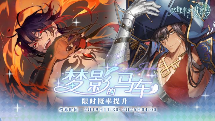 【梦影的马车·招募预告】⭐招募时间2025/2/19 11:30 - 2025/2/26 04:00⭐UP角色UR 獠夜[夜烬炎光](暗)UR 阿尔瓦罗[宝藏猎人](火) ※两位角色出率均分,总计占UR角色出率的50%。⭐兑换截止时间:2025/3/5 04:00⭐招募说明※此次限时概率提升期间,两位角色将会同步开放羽毛商店兑换。※本招募卡池为[轮替招募]。本招募卡池与其他