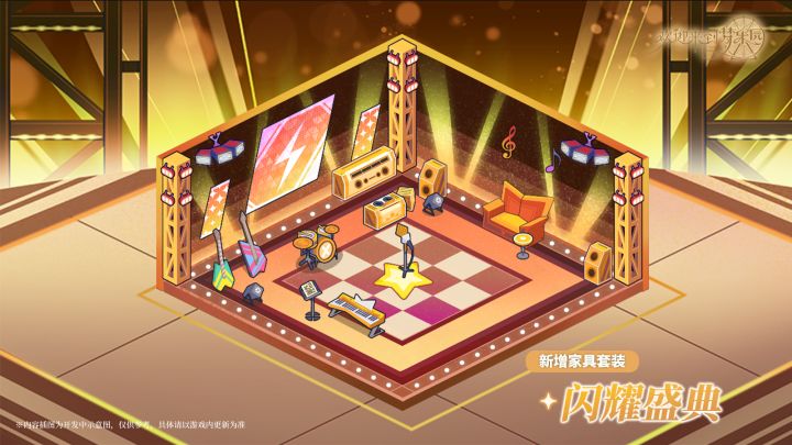 ✨「成为偶像」活动家具套装来袭!⭐新增家具套装【闪耀盛典】✨活动奖励- 获取时间:2月5日维护后~2月19日04:00限时免费领取【闪耀盛典】家具制作图纸- 获取方式:「成为偶像」活动商店兑换、商店-家具中使用家园币或夜光钻购买家具图纸⭐新增家具套装【璀璨盛典】- 套装说明:内含管理者可交互家具「璀璨之星」,将其摆放至乐园宿舍中时,管理者与梦乐园中的所有角色可一起与该家具进行交互- 上