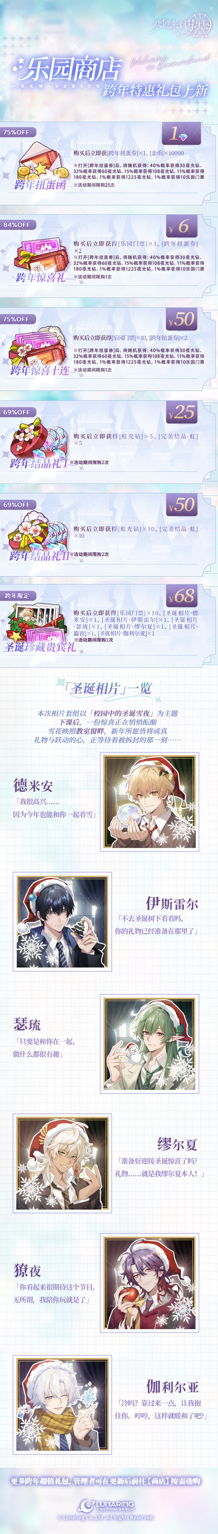 ✨「乐园商店」跨年特惠礼包上新!活动时间:12月25日维护后~2025年1月8日04:00⭐特惠礼包上新超值「跨年扭蛋函」、「跨年惊喜礼」特惠上架!⭐圣诞主题相片礼包上新全新相片套组礼包限时上架!具体礼包信息,管理者可点击下图查看详情↓↓↓
