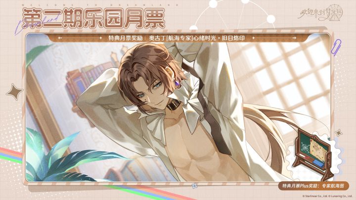 ✨第2期「乐园月票」3月2日开启!第2期乐园月票时间:3月2日04:00~4月1日04:00「乐园月票」说明:管理者可在乐园月票活动期间,通过完成每日任务、每周任务和限定任务获取月票经验进而提升月票等级,获得丰富奖励。同时,管理者还可以通过购买【特典月票】或【特典月票Plus】解锁更多奖励。〓特典月票〓-售价:45元-奖励内容:解锁乐园月票进阶奖励、奥古丁[航海专家]心绪时光·旧日烙印〓
