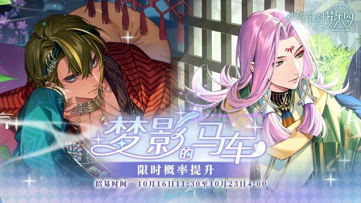 【梦影的马车·招募预告】⭐招募时间2024/10/16 11:30 - 2024/10/23 04:00⭐UP角色UR 苍木[古木苍华](光)UR 安提尼[雾缈莲池](地) ※两位角色出率均分,总计占UR角色出率的50%。⭐兑换截止时间:2024/10/30 04:00⭐招募说明※此次限时概率提升期间,两位角色将会同步开放羽毛商店兑换。※本招募卡池为[轮替招募]。本招募卡池