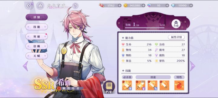 ☆特性:水属性伤害提升+物理伤害提升。水物理队的强力辅助位,作为主C也很强。