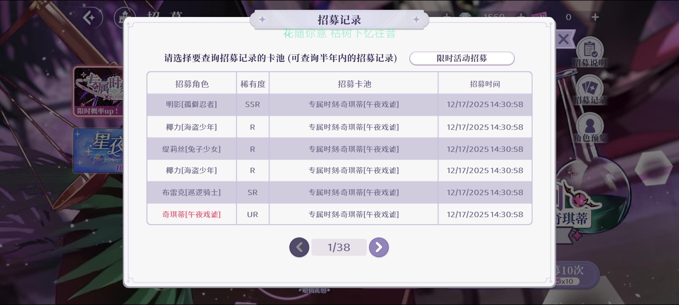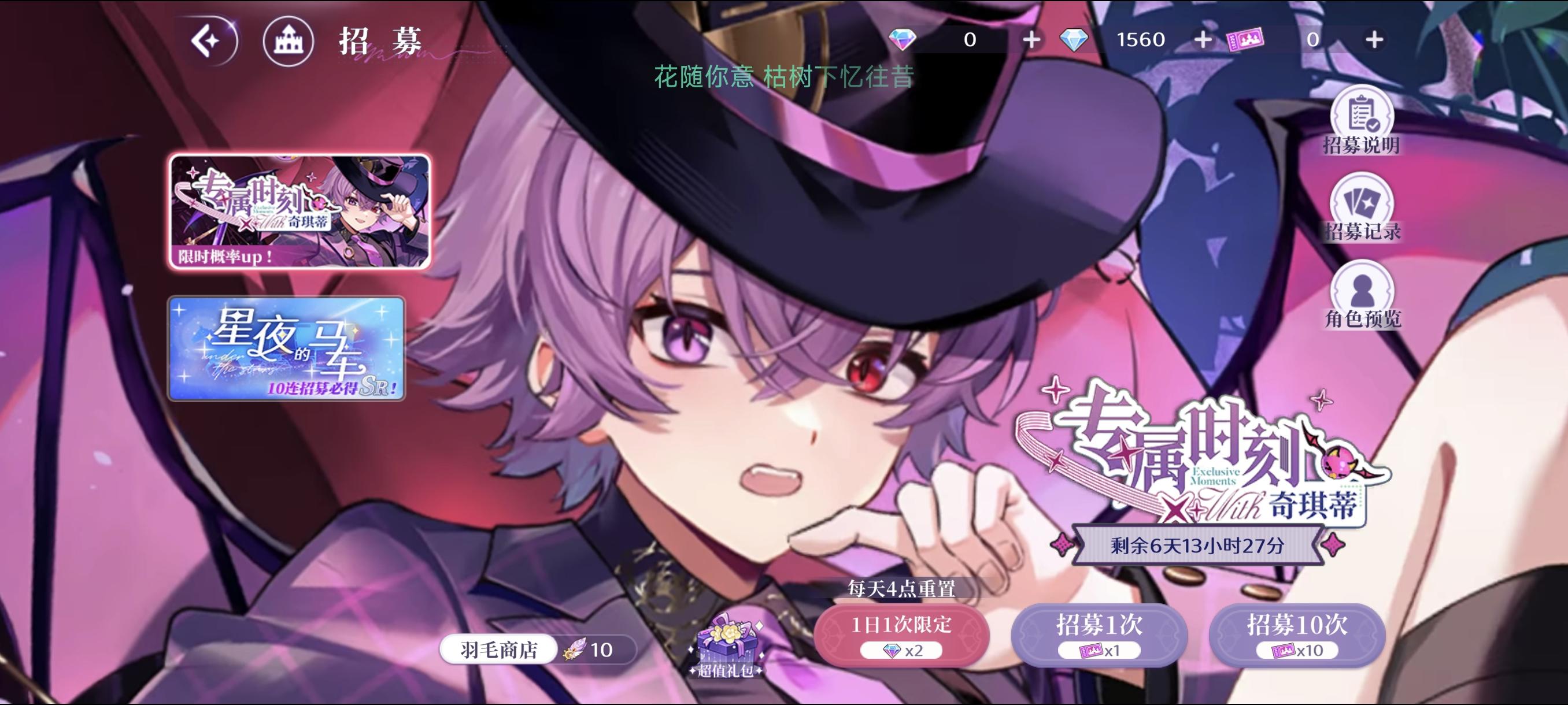 十连就中了,这是突然幸运降临了嘛,之前有两个活动抽了几十次都快180了都抽不中,一直在等这张,后面好多活动都没抽卡,海滩那次德米安都没抽,凑了3w的钻石和十几张票,没想到啊这次十发就中了嘿嘿奇琪蒂~