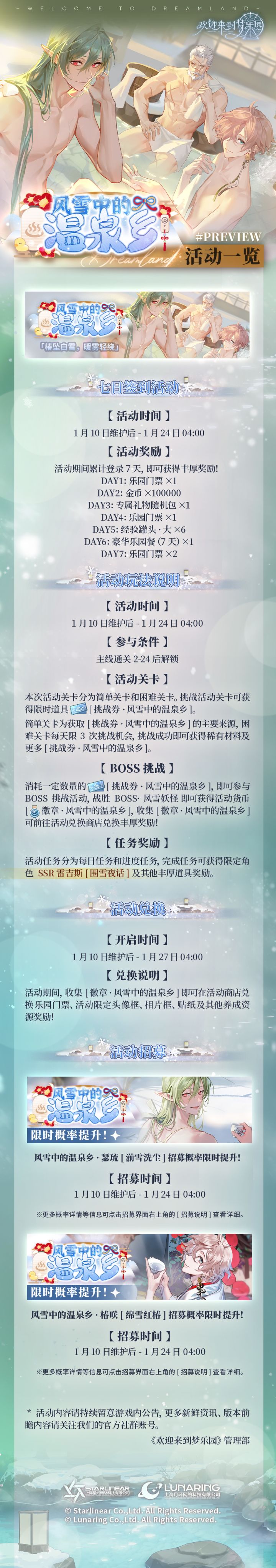 乐园布告栏丨全新限时活动「风雪中的温泉乡」活动一览