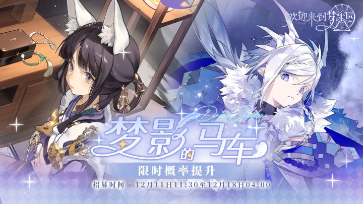【梦影的马车·招募预告】⭐招募时间2023/12/11 11:30 - 2023/12/18 04:00⭐UP角色UR 莱米尔[冰山恶龙](水)UR 金樱子[黛紫玲珑](雷) ※两位角色出率均分,总计占UR角色出率的50%。⭐兑换截止时间:2023/12/25 04:00⭐招募说明※此次限时概率提升期间,两位角色将会同步开放羽毛商店兑换。※本招募卡池为[轮替招募]。本招募卡