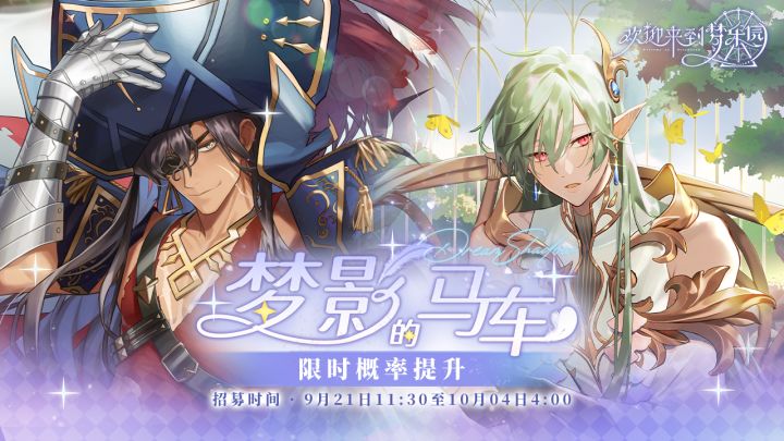 【梦影的马车·招募预告】⭐招募时间2023/9/27 11:30 - 2023/10/04 04:00⭐UP角色UR 阿尔瓦罗 [宝藏猎人](火)UR 瑟琉 [白雾冠冕](风)※两位角色出率均分,总计占UR角色出率的50%。⭐兑换截止时间:2023/10/11 04:00⭐招募说明※此次限时概率提升期间,两位角色将会同步开放羽毛商店兑换。※本招募卡池为[轮替招募]。本招募卡池
