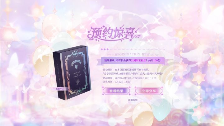 ▌全新官网上线,福利活动同步开启全新官网已同步上线:⭐100份公测限定礼盒放送!⭐前往官网,预约游戏并参与抽奖活动,即有机会获得公测限定礼盒!*本次活动将采用随机抽选的方式选出中奖用户。听说分享页面并成功邀请新用户预约,中奖概率将会提高哦!⭐200万预约里程碑奖励追加!⭐预约达150万送:主角限定装扮 [缎带奏鸣曲]预约达200万送:限定相片套组[精美夜莺相片]及[乐园门票]*预约
