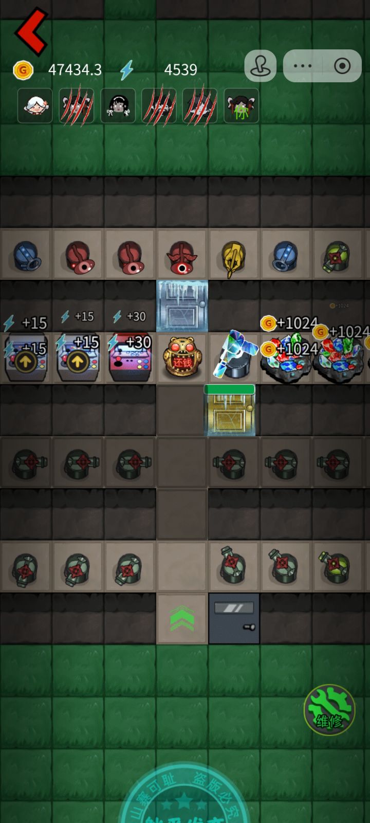 玩了好几天,最成功的一次塔防,全靠前期开的一个砖石矿,一秒512金币,然后我就框框升级哈哈哈,鬼来了在我家门口都不能停超过5秒,塔台太强了😄,然后把所有的闪电盒子都升满级,矿石也是最高级哈哈
