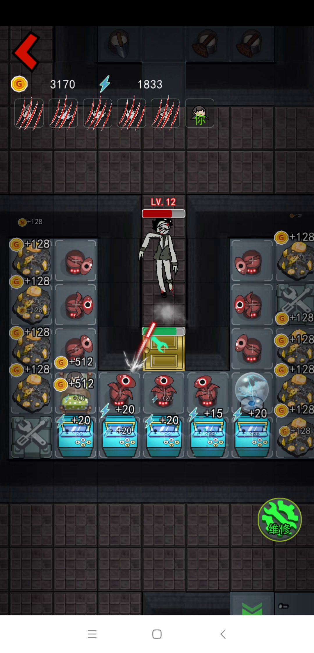 开局快速成长,魔盒是很重要的道具,如果喜欢慢慢玩可以不用魔盒,想要刷排行榜就必须用魔盒, buff也要有,前期第一第二回合不停用魔盒刷快速结束游戏,选择buff,帮你花钱,强行变卖,有这两个就够了,其他的buff选择银行,炮台攻速,网兜+1秒,自动网兜,大门血量,魔盒变身, 炮台推荐刷满,不出炮台攻速的情况下不选择buff选择重新打回原来的那局继续刷buff,