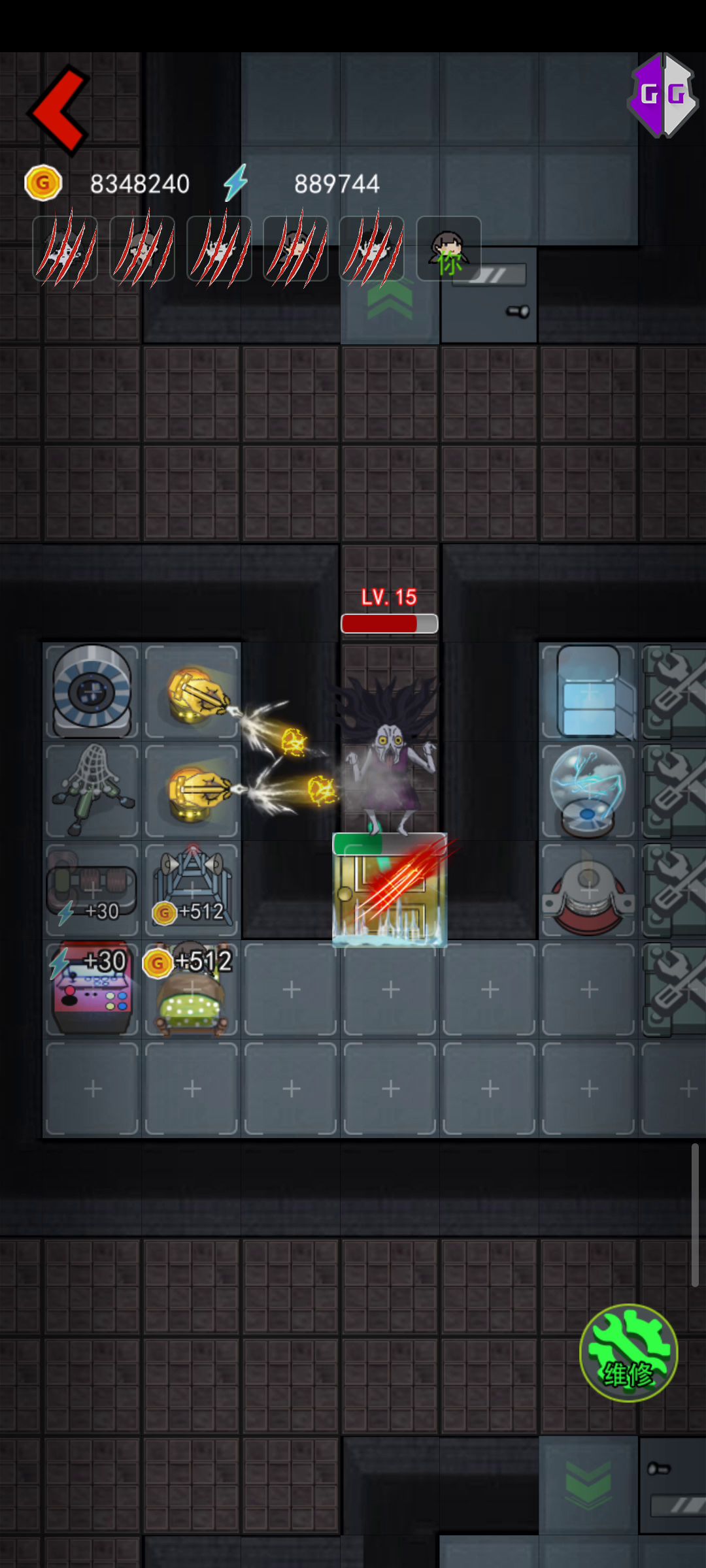 记住一句:不要贪床升级和买电机(下统称升科技)。 门比鬼高两级,可以直接无视鬼。高一级就需要输出凑(不升门贪科技一掉要有输出在贪一点),时刻注意鬼等级。这是秘诀。贪科技没防御就等死吧。 硬币什么的无所谓,我没用过。 不要等鬼来了在买炮台时刻准备着,+8时一秒一个扫帚不买,你不死谁死,+16时一秒一升级,不升级留着贪,你不死谁死。 只要不是鬼突然在挠你门时升级,又没有金币应对基本上不会输。 不管鬼来