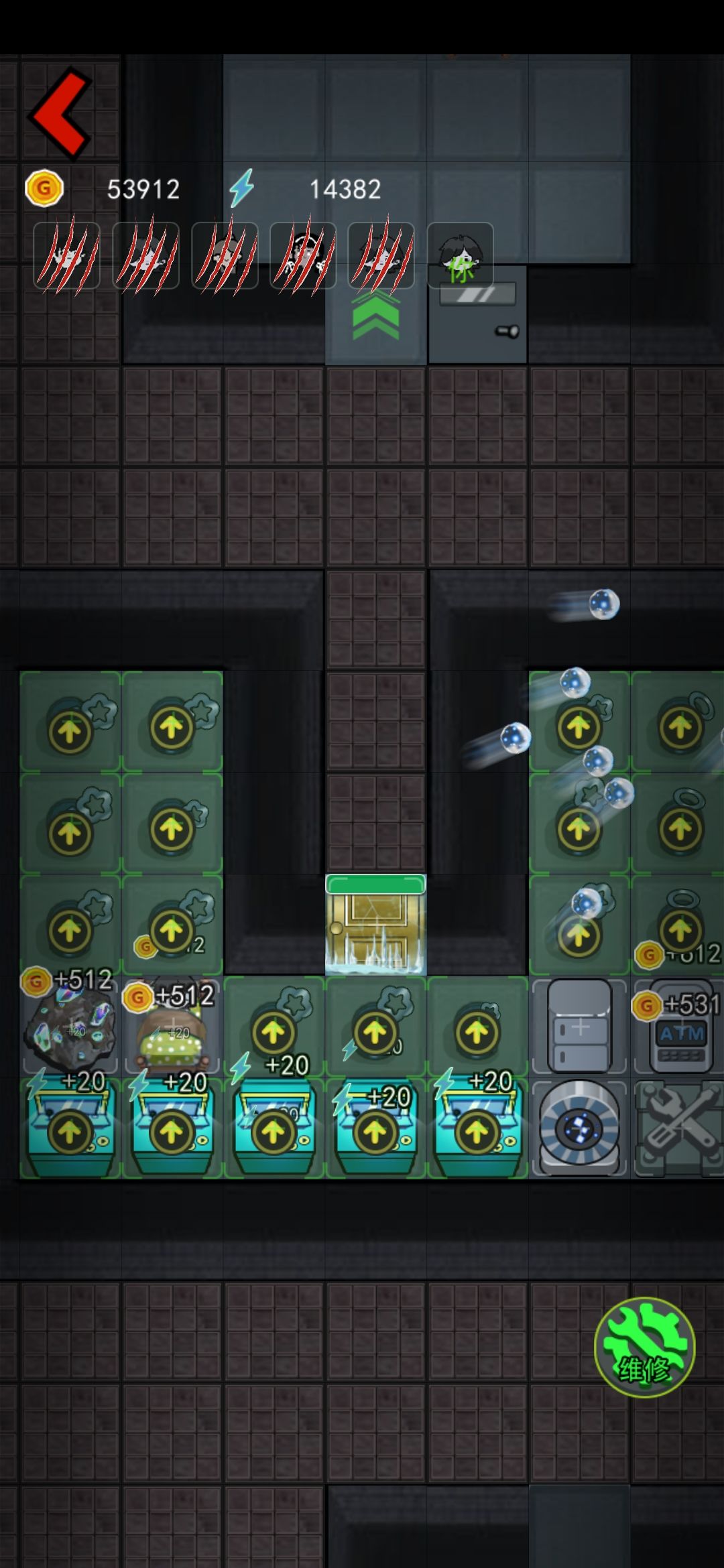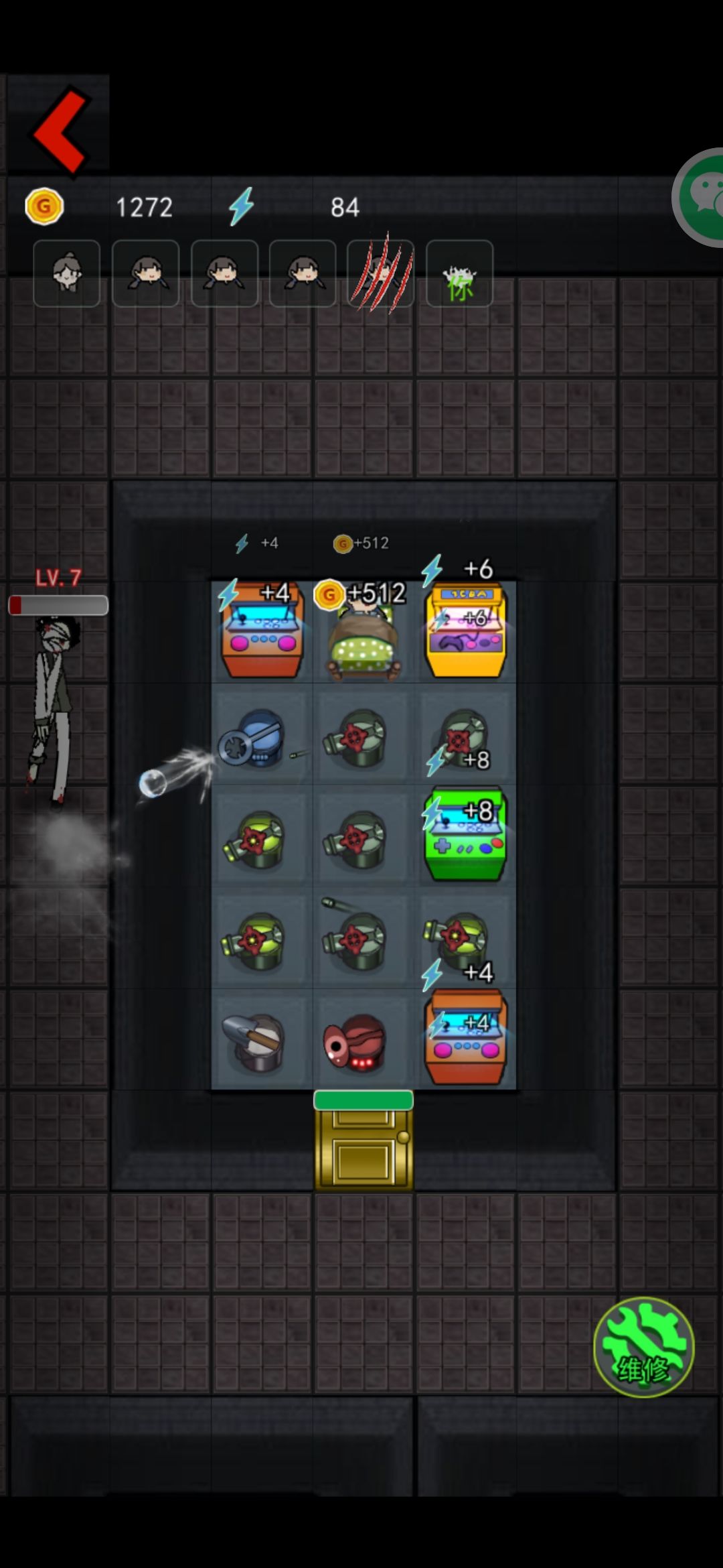 因为幸存者的发展速度是很快的,绷带鬼其实也赶不上,简单说,鬼要升级就要吃门皮,不攻击等于不升级,只要卡住这个血线就能养,之前卡血线不小心把攻击塔卖了一个,导致只养到十二级,还是很遗憾的,不知道具体上限是多少,至少攻击塔的攻击是足够杀死的。