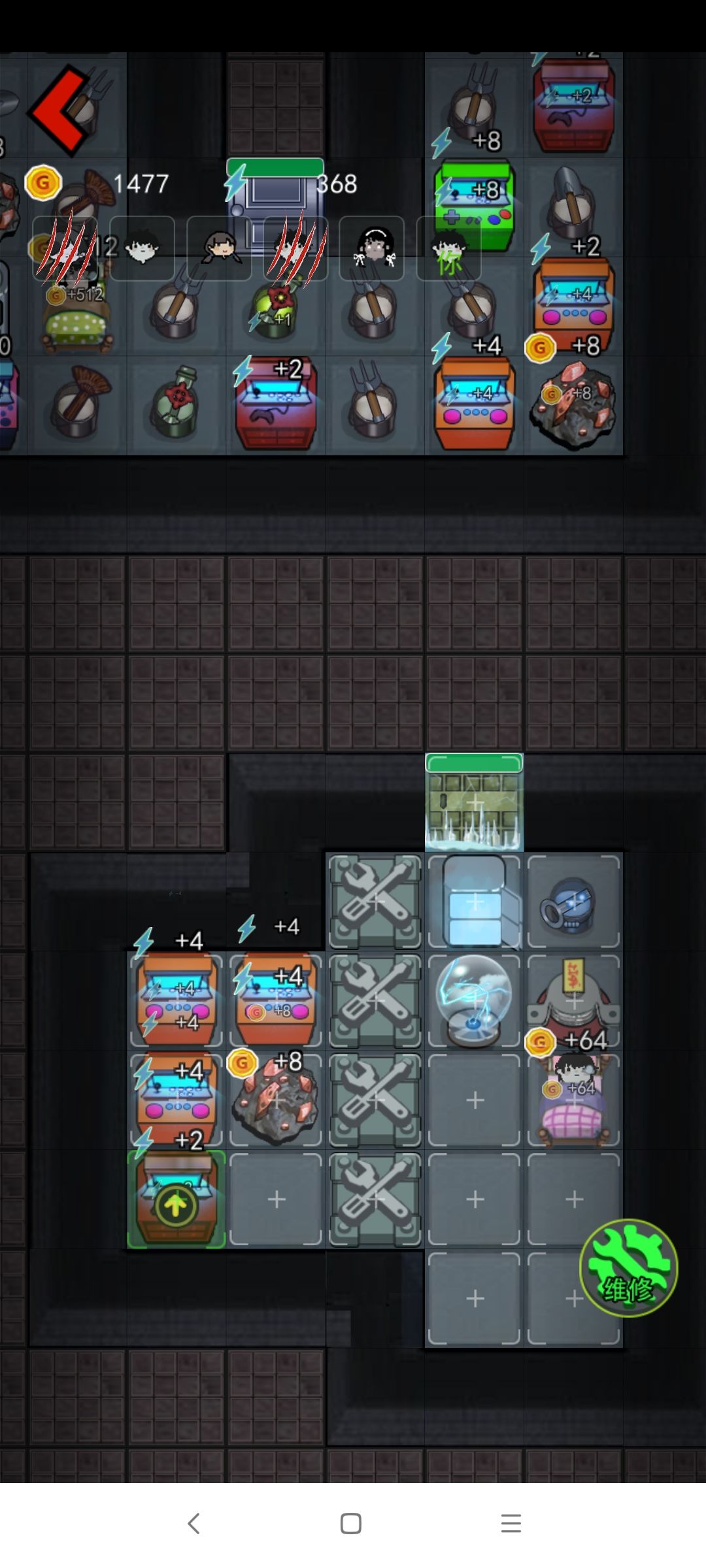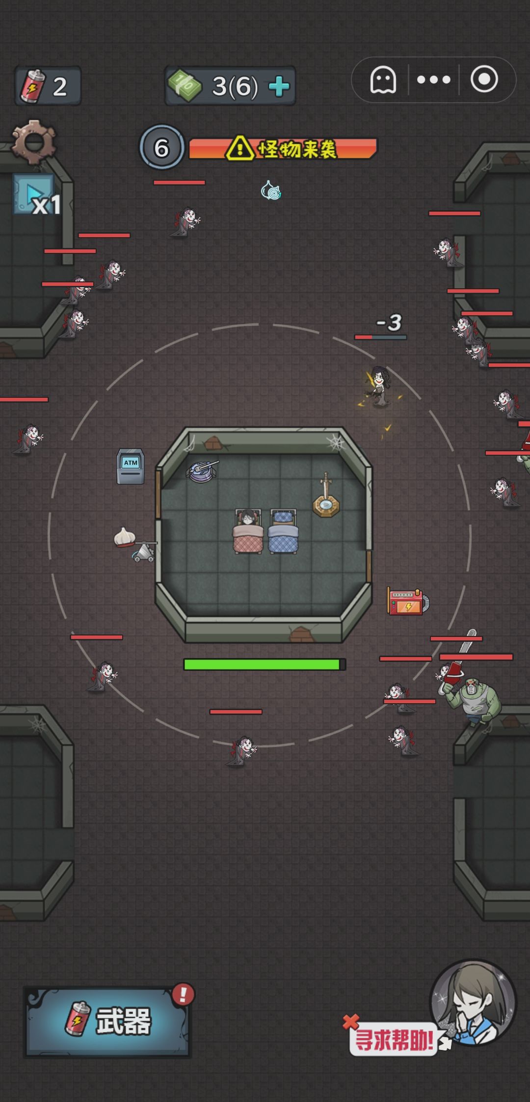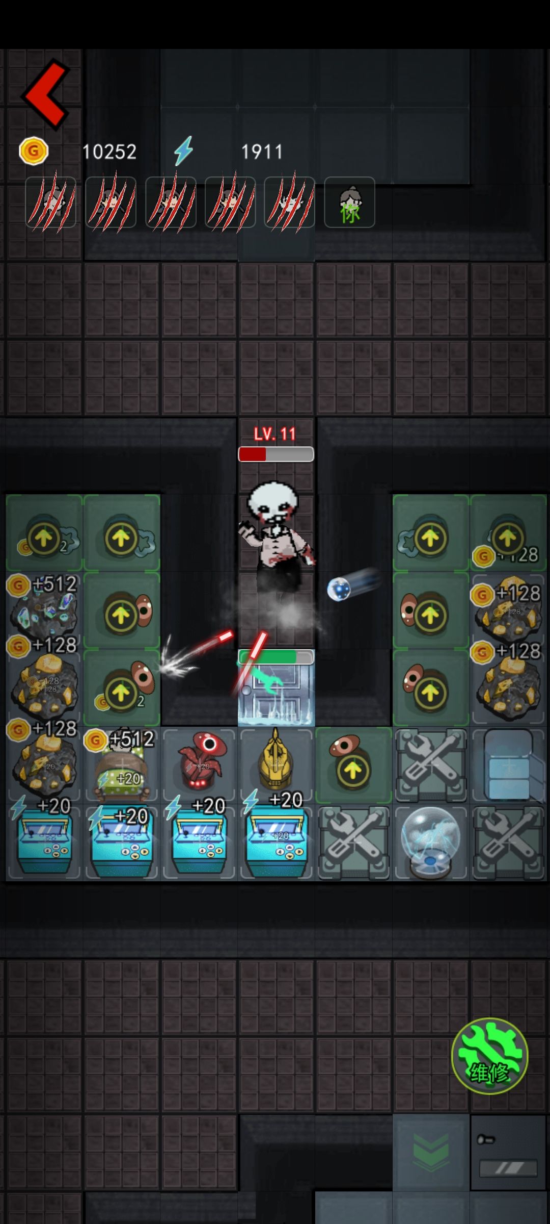 我之前数了一下大概鬼回血到门口的时间是10秒左右,这个时间你可以攒40金币,后面如果鬼没来,那你就攒100金币升级床到8金币一秒,期间还是要注意鬼的动向,鬼来了就升级门+放炮。