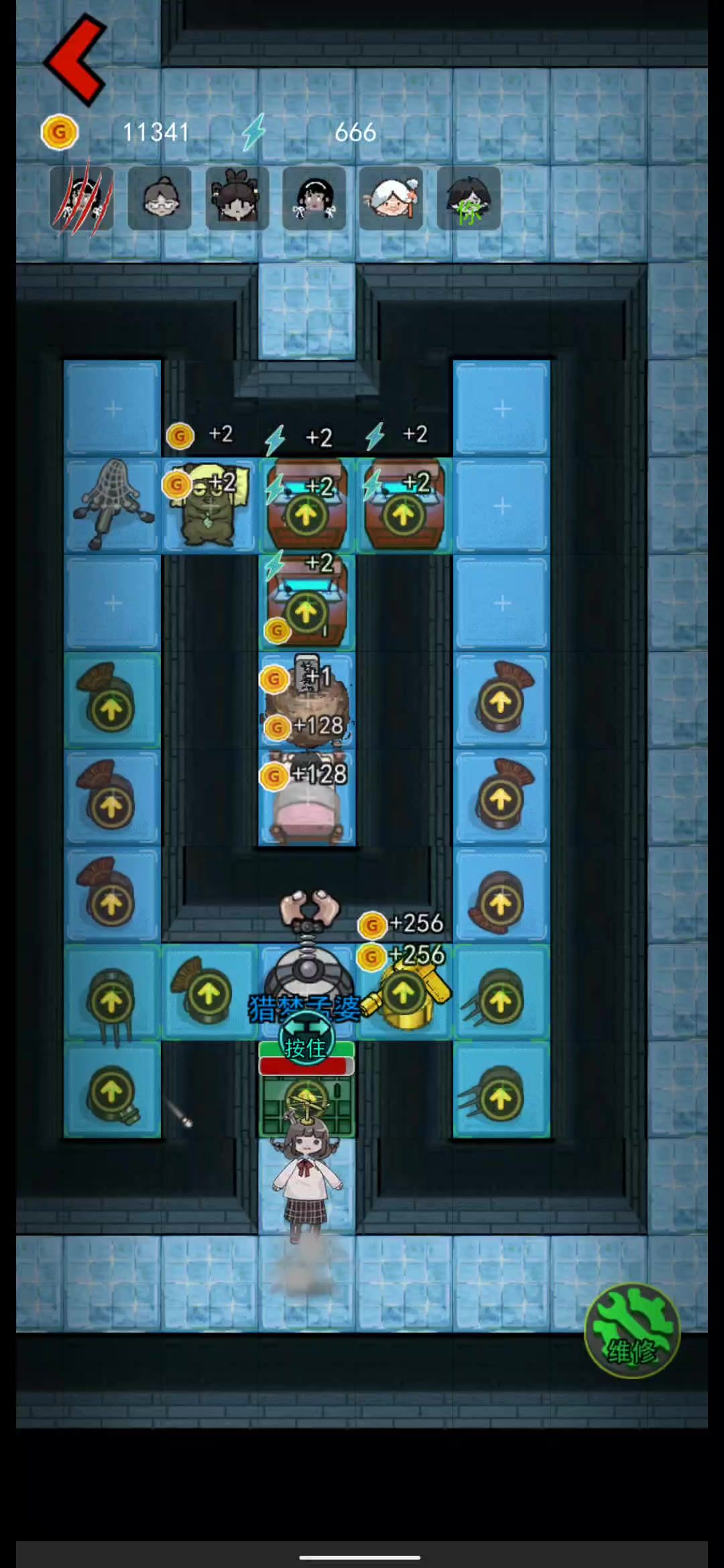 开局快速成长,魔盒是很重要的道具,如果喜欢慢慢玩可以不用魔盒,想要刷排行榜就必须用魔盒, buff也要有,前期第一第二回合不停用魔盒刷快速结束游戏,选择buff,帮你花钱,强行变卖,有这两个就够了,其他的buff选择银行,炮台攻速,网兜+1秒,自动网兜,大门血量,魔盒变身, 炮台推荐刷满,不出炮台攻速的情况下不选择buff选择重新打回原来的那局继续刷buff,