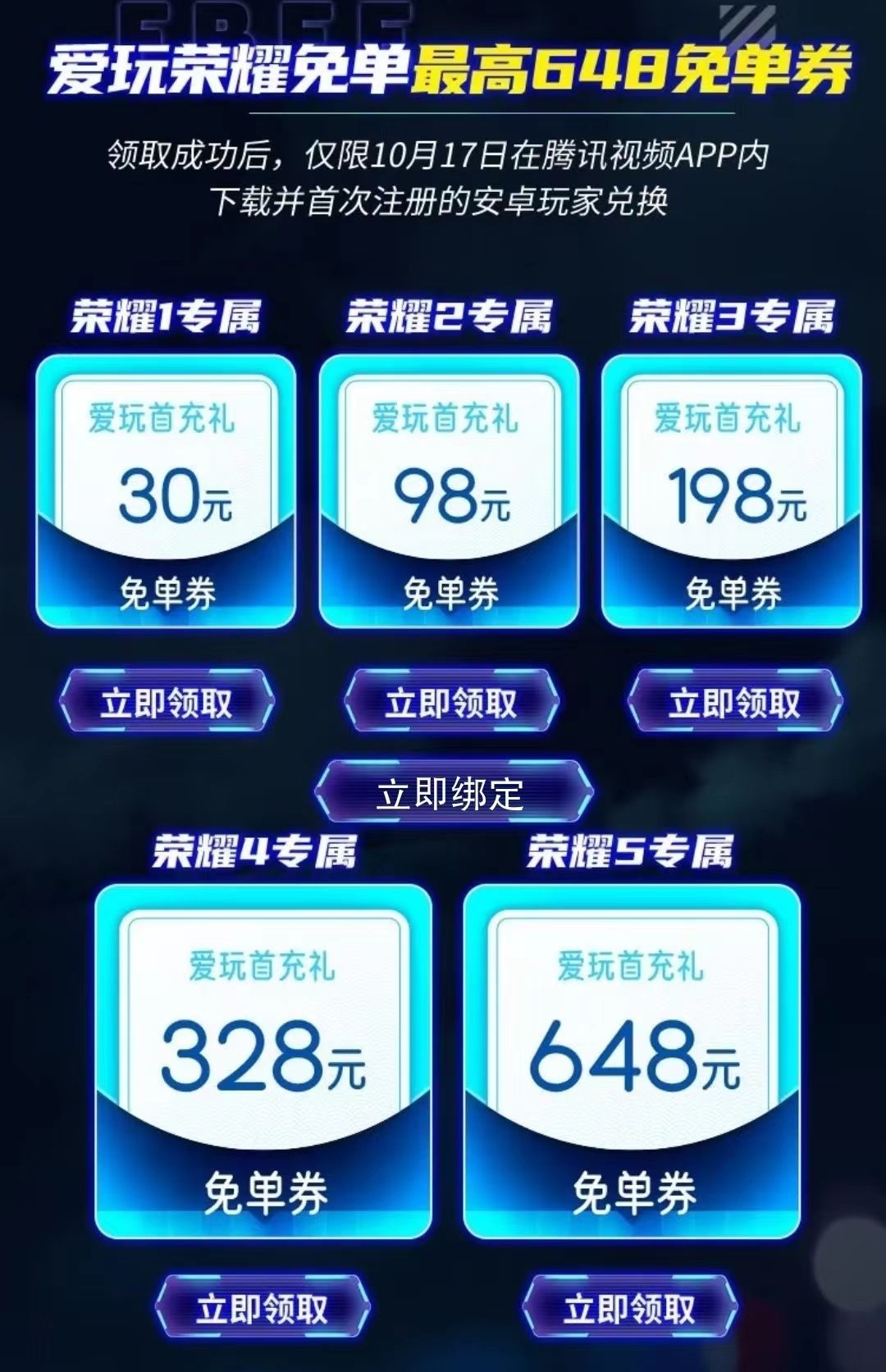 劲乐幻想首发定档10月17日啦!倒计时一天啦,不要错过预约奖励。活动期间在tx视频搜索劲乐幻想预约并绑定爱玩荣耀就能领取最高648免单券、以及vip体验卡哦!另外完成指定任务就可以刮分20qb奖励! 最后邀请好友助力,还有qb领取,不要错过