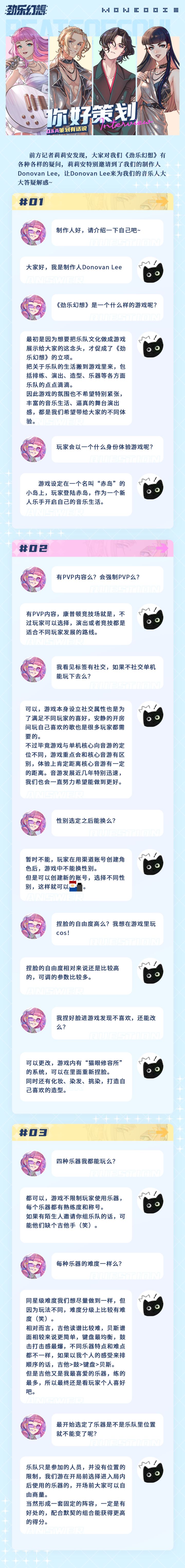 大家好,我们是《劲乐幻想》制作组感谢大家的催更与建议,在这段时间里我们汇总了一些具有代表性的问题,并由制作人回答。因为游戏仍在开发中,很多问题难以给到具体的回复,敬请谅解。我们也会抓紧制作进程,争取能够早日与大家见面~如有任何疑问欢迎添加《劲乐幻想》官方1群:873639545《劲乐幻想》官方2群:627074485————▷▷————下面就有请我们的制作人大大@Donovan L