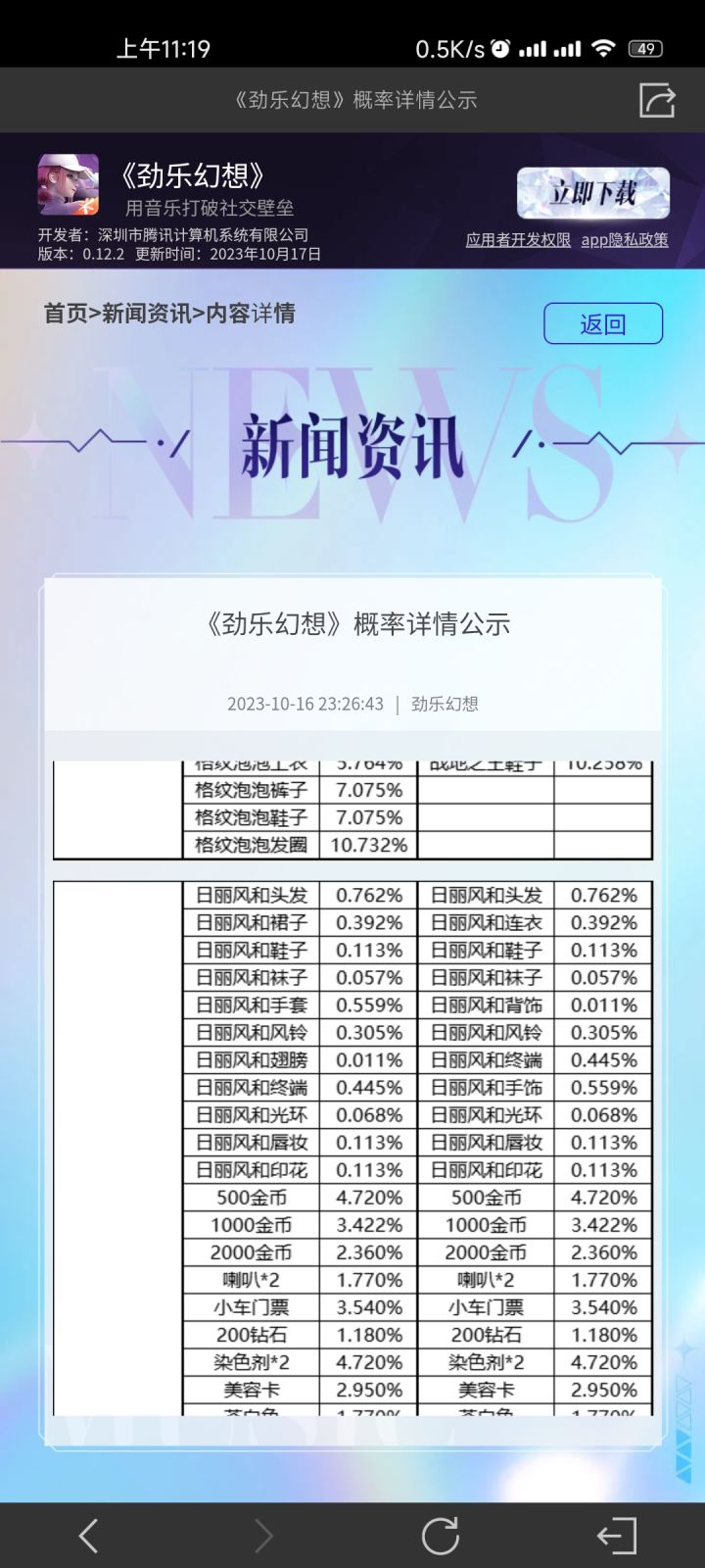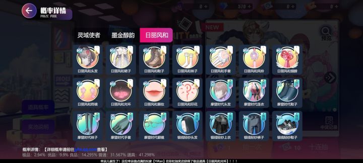 两件主题极品,基本上抽到大保底才出,不知道是真是我黑还是这个概率烂,看了一眼极品2.94%,但是呢,隔壁链接有详情概率,点进去一看合着你是这堆部件加起来2.94概率是吧有一说一作为暂时节奏大师一个替代,还是可以的,内容上比较倾向社交向,服装和人物游戏内表现建模也蛮复合腾讯游戏一贯的审美。。。。但是这概率就真有点搞了