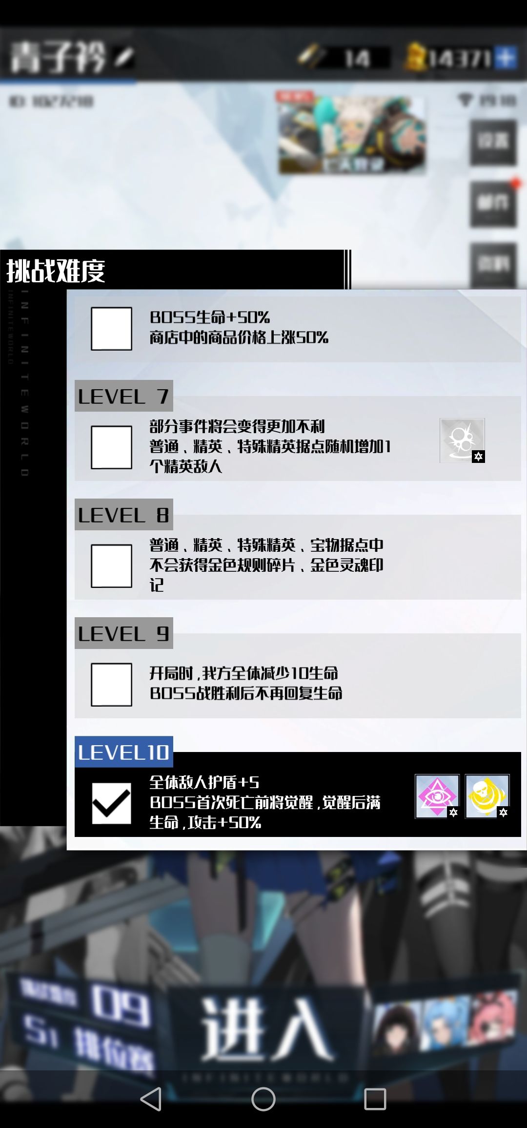 难度:🌟🌟🌟🌟🌟(历史难度前三预订) 新手推荐度:🌟(随便选两三个词条打300~500分吧,800分以上难度陡增) 难点:无护盾“不堪”(默认不选),射手变白板(禁天赋减射程),其他紫色、金色词条叠加(多重阴间体验),开局前三关生存,一图BOSS关通关。 高分难度:🌟🌟🌟🌟🌟(五星爆表,法师天胡配合射手的“隐匿”才有可能?不然1300分都无解) 通关思路:献祭寿命的通关,基本都是天胡局(主要难点为