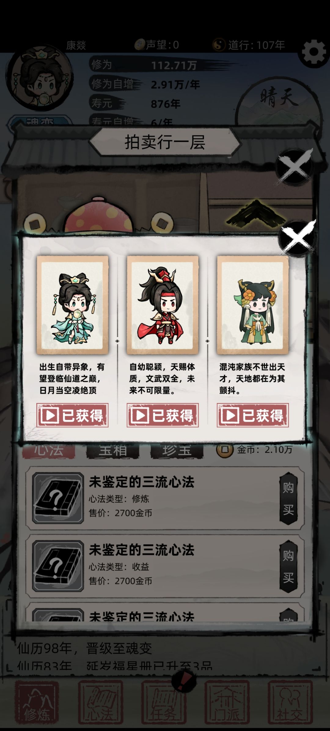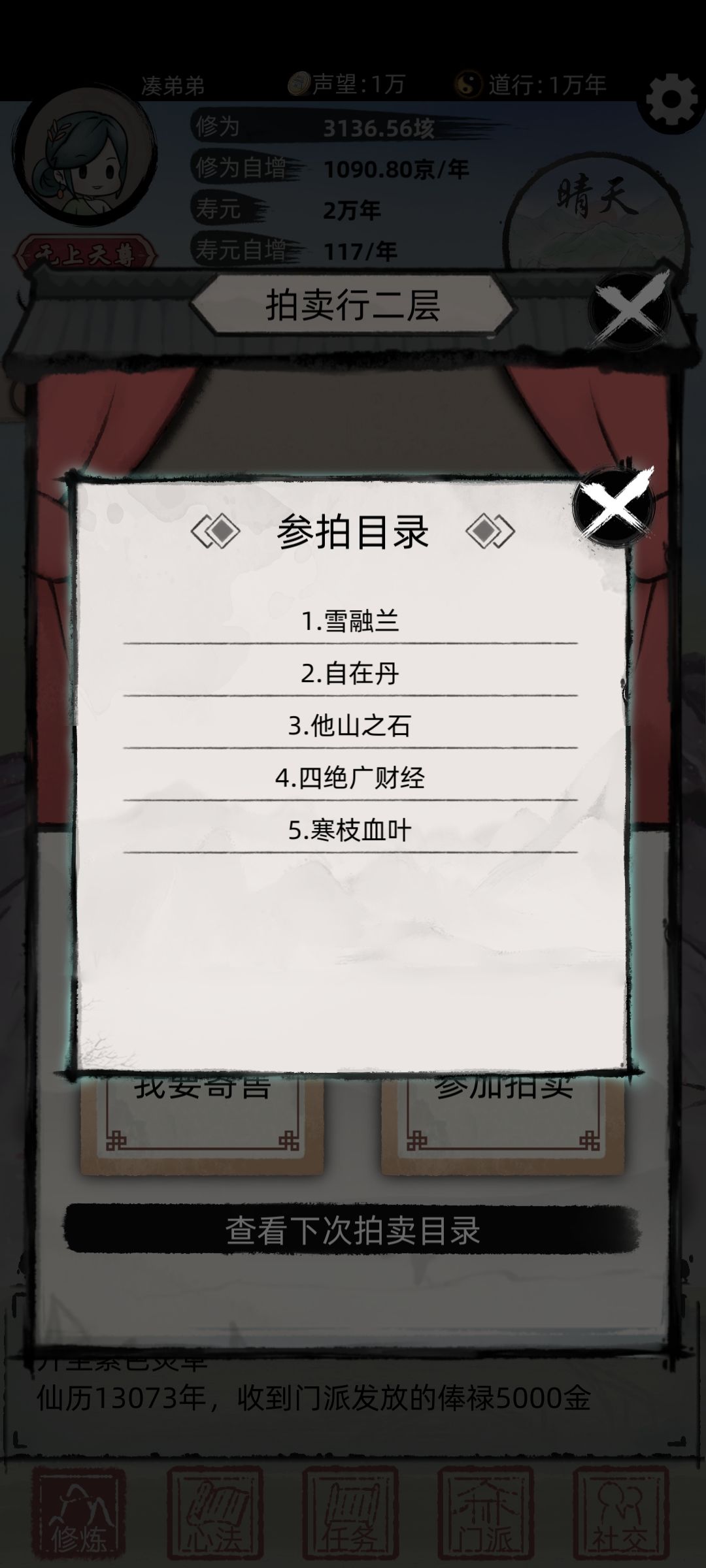 5.功法一律在拍卖行买,百宝阁和商店没用,不用升级