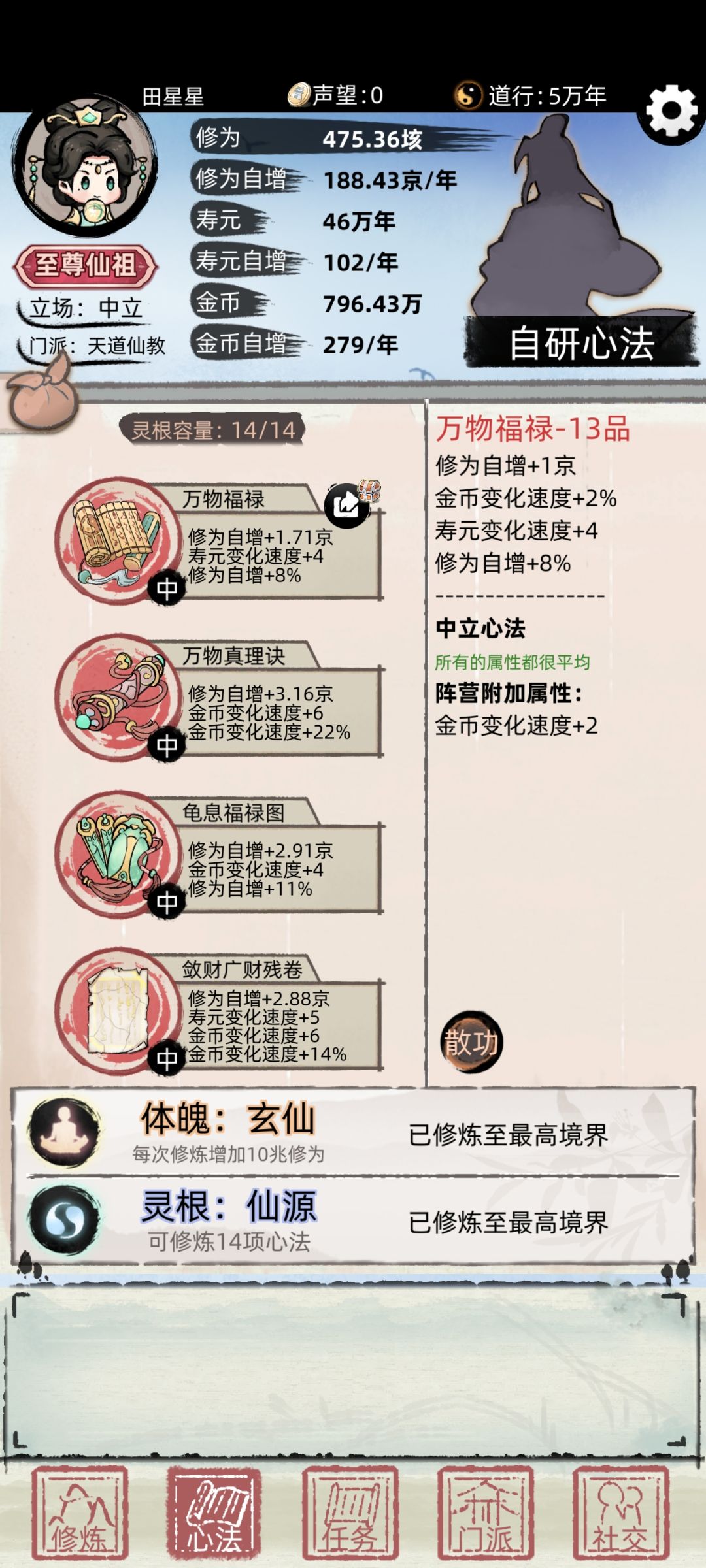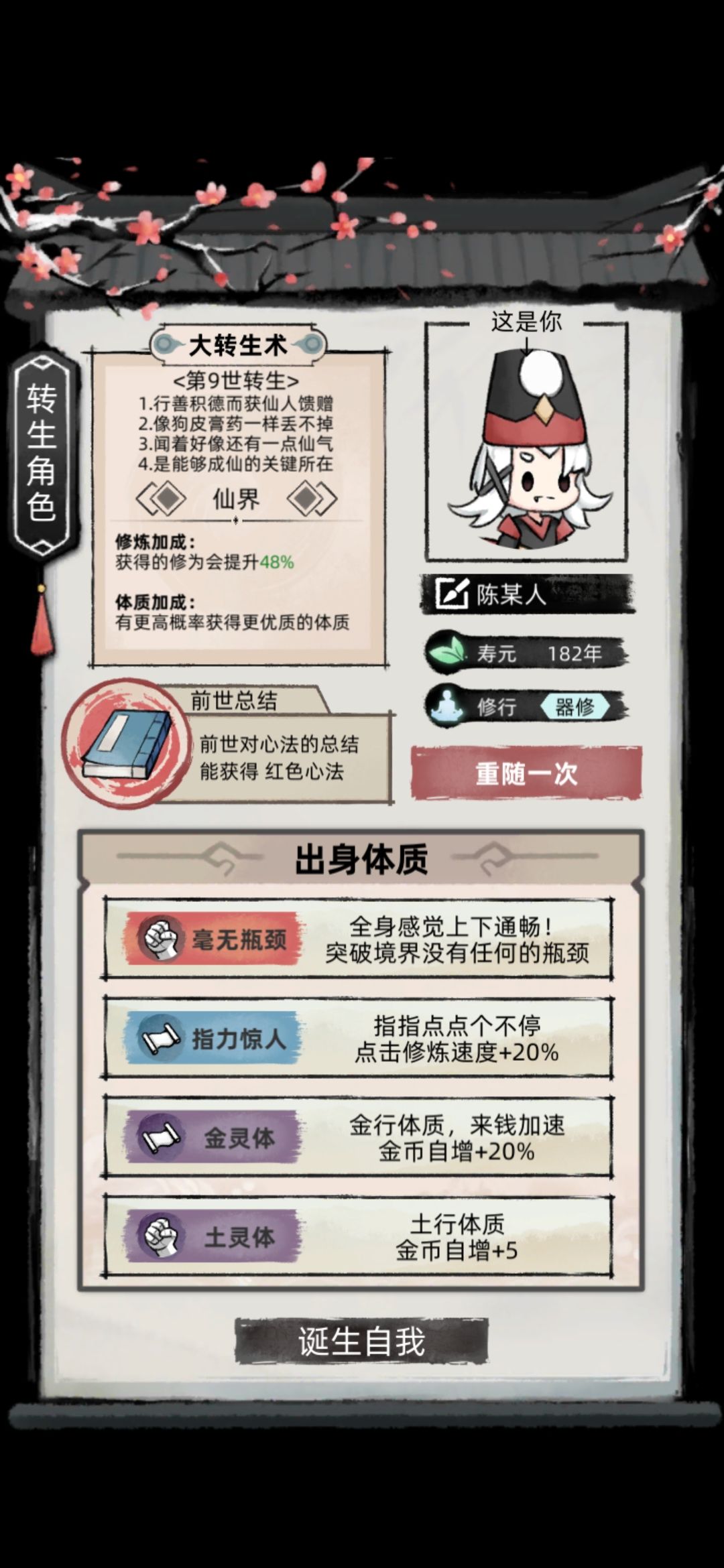 6.好用的初始天赋:无瓶颈(不用做任务拿灵感),无天劫(不用麻烦渡天劫)
