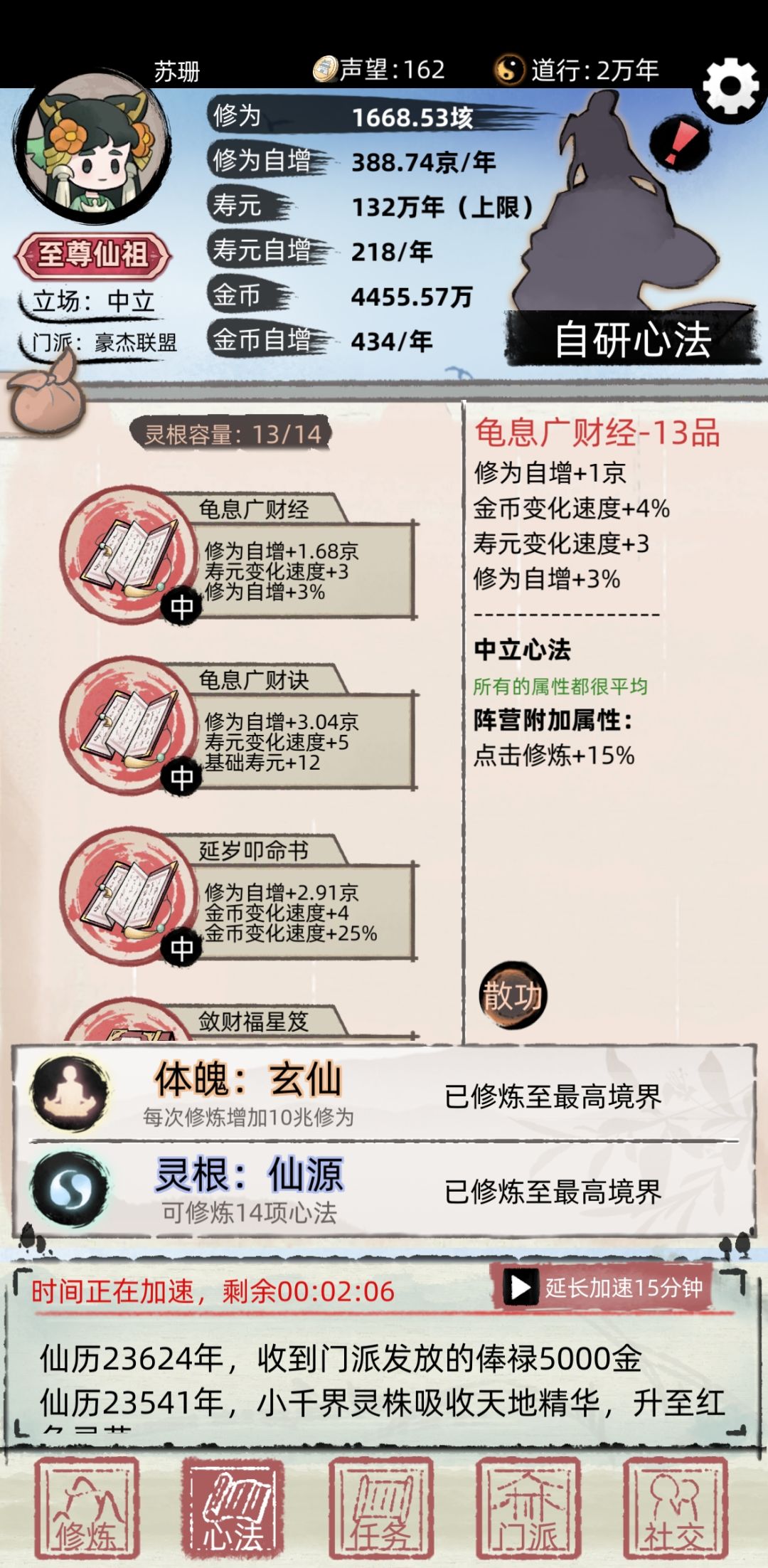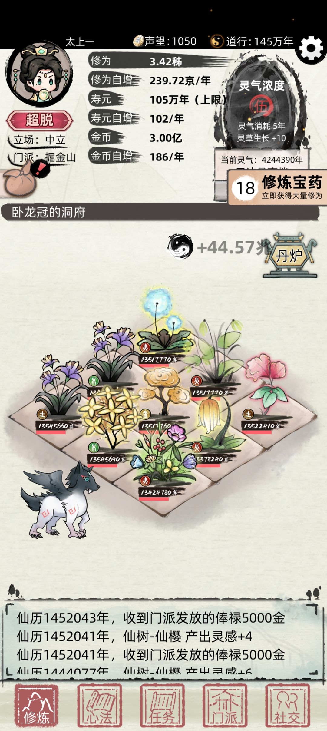 9.洞府:前几世种菜卖钱,不建议炼丹,炼丹有损耗,不如单独卖草药