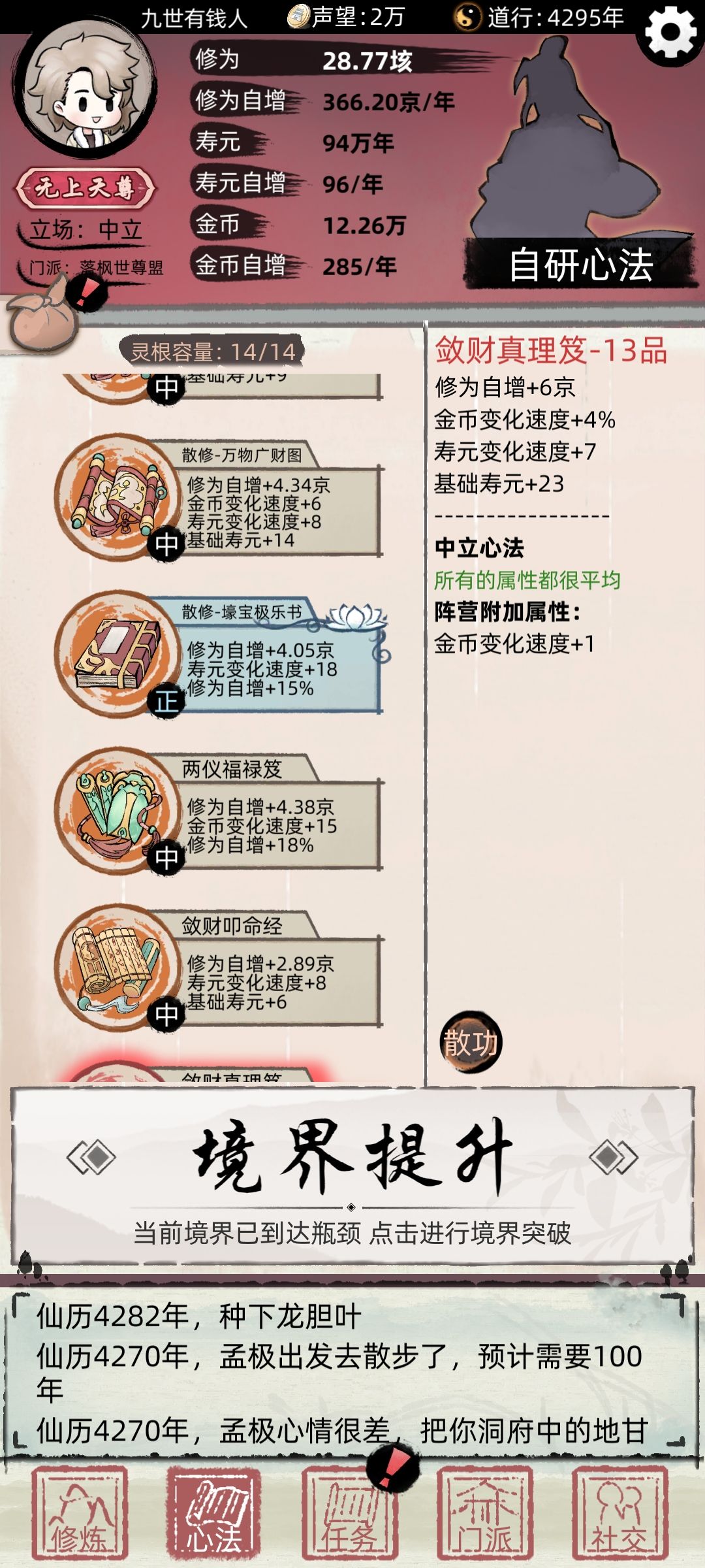 再搭配上前期一两颗他山之石或者两仪剑,金币自增直接成线性增长