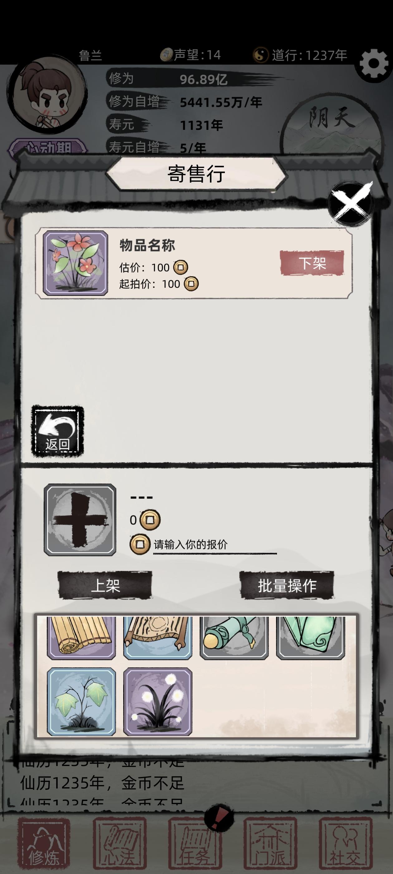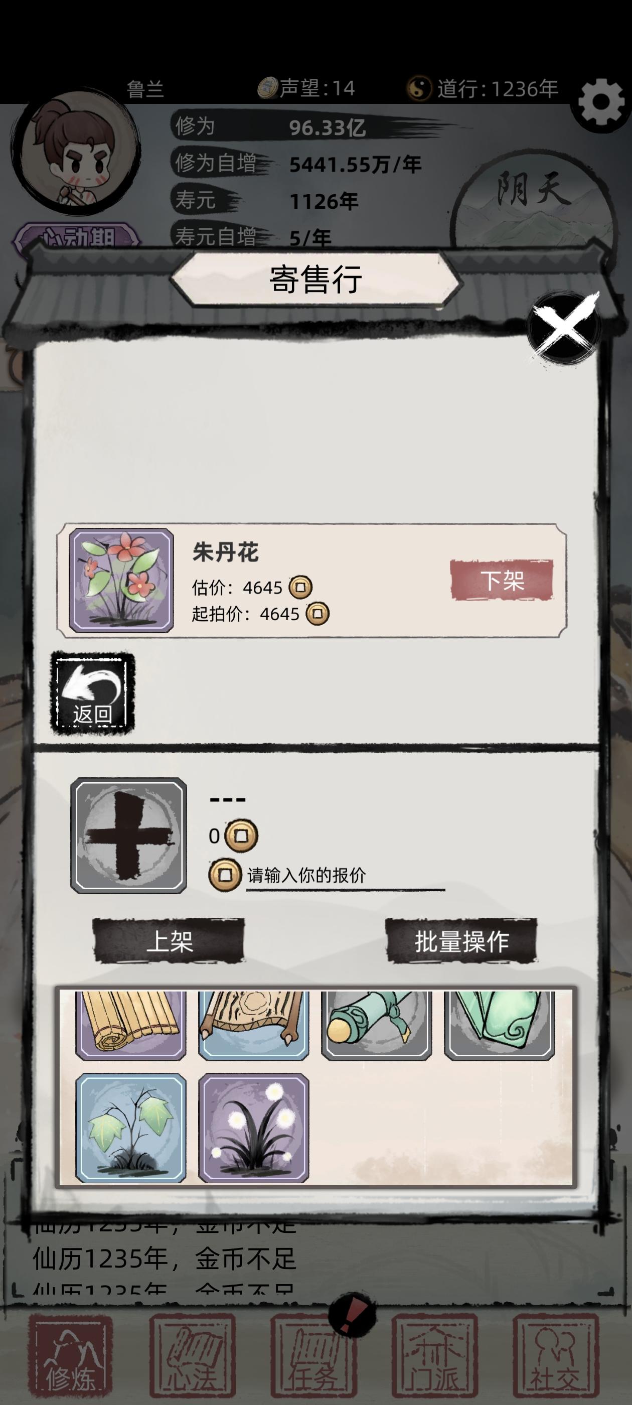 9.洞府:前几世种菜卖钱,不建议炼丹,炼丹有损耗,不如单独卖草药