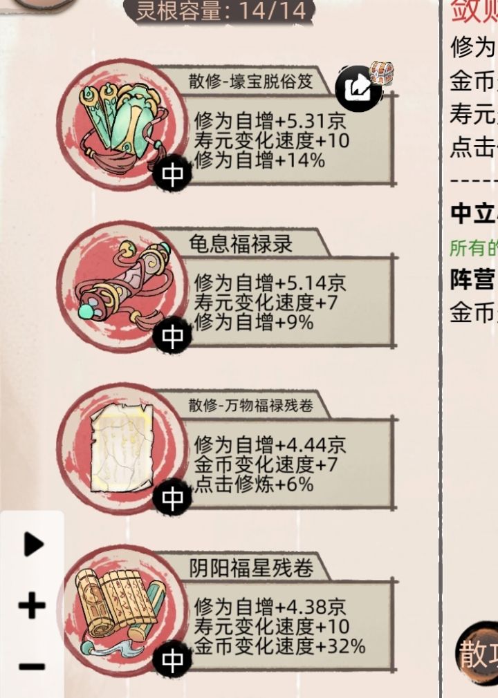 修仙世界 金钱开道!此攻略主要面向老手,各种小技巧让你熟悉游戏后更快修仙转世到九重天。先上毕业照1、开局到加入第一个宗门,推荐正道宗门,正道功法有金钱,寿元加成。2、正道功法篇:接奖励箱子的正道立场任务,领奖时包里不能有同样的箱子,保证你领取的箱子是包里第一个。后面只要包里箱子的一直最少保留有1个,不管你从任务 商店 宗门 得到的中立邪派箱子都只会开出正道功法。(如下图我接个奖励初级宝箱