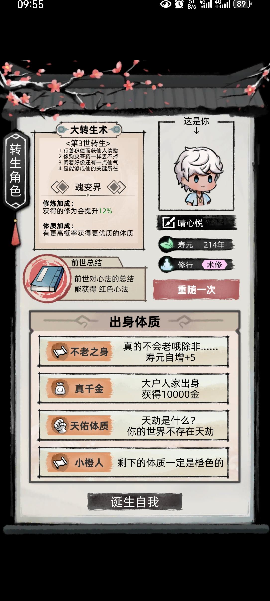 6.好用的初始天赋:无瓶颈(不用做任务拿灵感),无天劫(不用麻烦渡天劫)