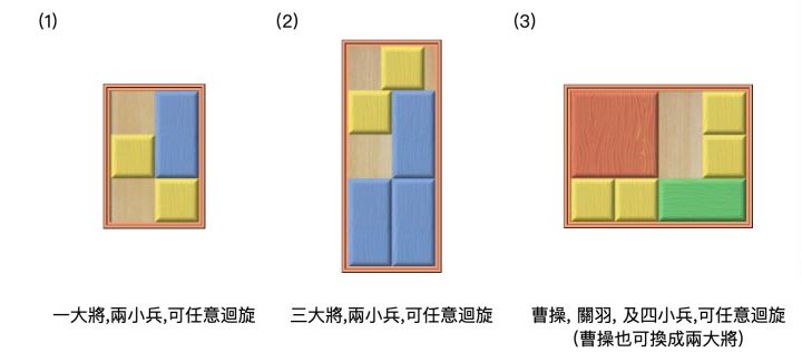 (3)曹操, 关羽, 及四小兵,可任意回旋