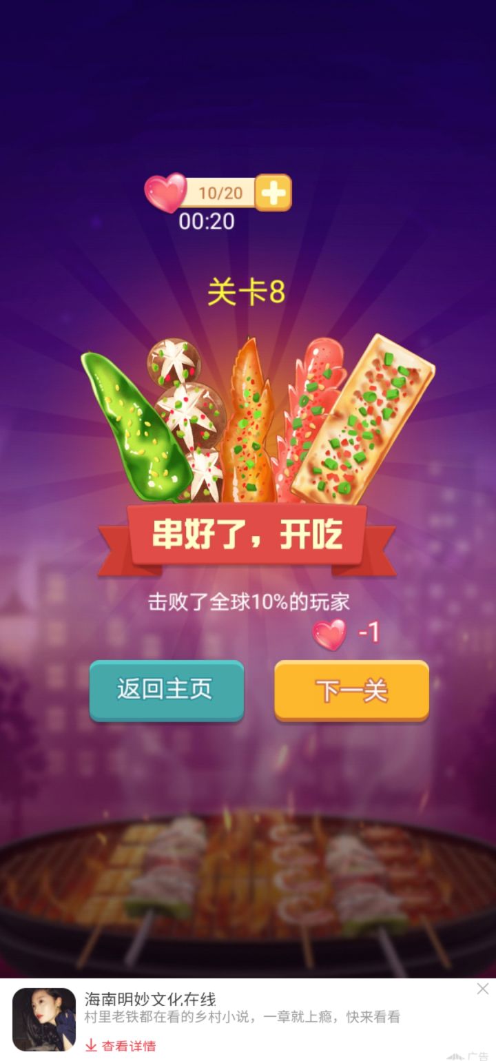 因为是一个吃货所以感觉串烧烤真的好有意思的。而且是那种玩法简单又稍微需要动动脑子的程度,玩着玩着就会停不下来。这个游戏有一个简单的技巧就是拖动食材过程中尽量要保留一根空签。