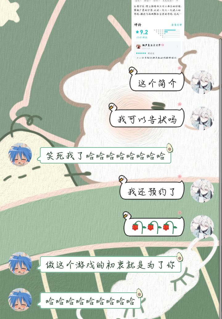 总结∶沙贝是一个很不戳的独立冒险游戏,它的剧情方面满分十分我给九分,还有一分怕它骄傲(这当然是对于我自己而言,每个人的都有自己的想法)玩也听说游戏好像有些小bug,不过我倒是没碰见,就算碰见了也不会影响我对这游戏的好感。pc端的沙贝我打算什么时候去补补剧情,再体验体验这游戏,pe端我也很期待它什么时候出来,让那些没能在电脑上体验沙贝的人补补遗憾(好耶!期待!(*^o^*))