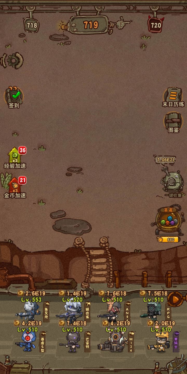 这就是一个看广告是游戏。。。目测看350个广告直接800级。。。什么搭配都是浮云。