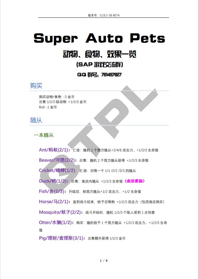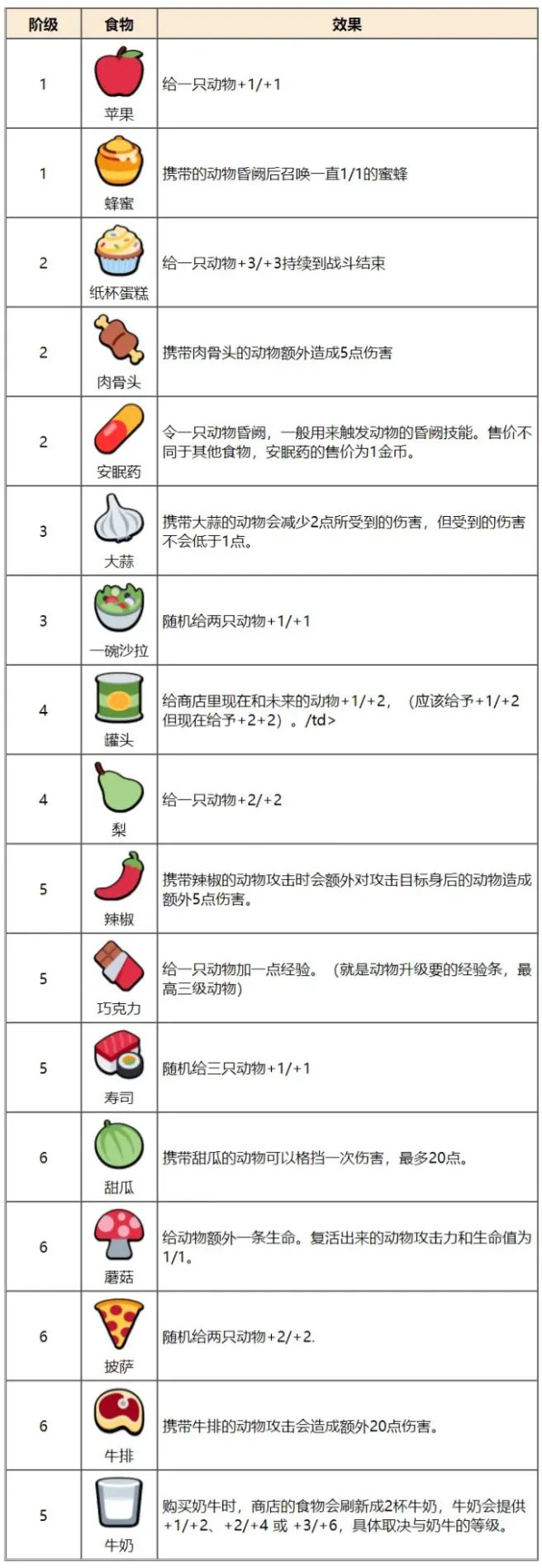 最新版本,动物食物效果一览欢迎随时加群 ❤️欢迎加入super auto pets游戏交流群❤️ 💚qq群:781497627💚