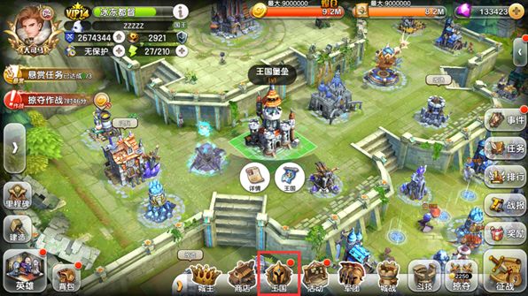 王国堡垒需要需要政厅等级到达Lv5才能建造,建造之后就可以从王国堡垒或者主城下方的王国按钮进入王国王国地图中有不同的区域,分别对应不同的功能,那下面就一起来看一下每个区域的功能1、王国大厅王国大厅相当于主城相当于主城里的政厅,升级大厅才能解锁建造其他的建筑,王国成员可以在大厅进行每日签到获取王国贡献2、指挥部 指挥部是国王发布王国任务的地方,发布任务后,王国全部的成员都可以参与任务,完成后