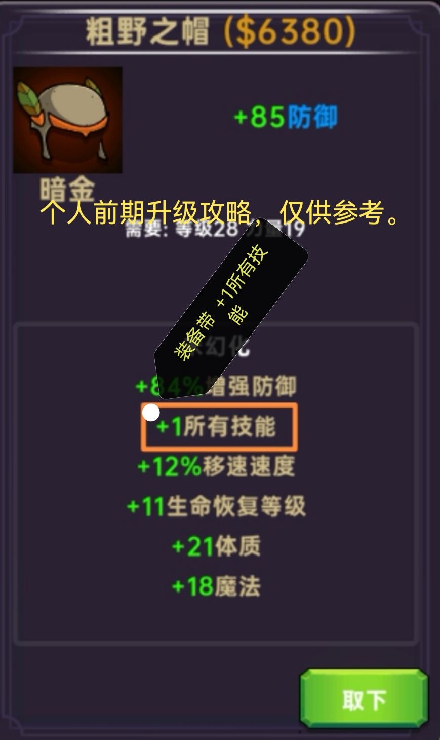 视频里挑的这套全暗金装(除了披风),主要在凑这些属性:
