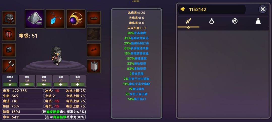 面板伤害1900(用狂热打击后3200),攻速76%,致命43%,压制46%,移速177%,攻击回血5%,攻击回蓝5%,血量300(只要不被秒,一刀就回来),爆率?(算了😂)。这套主要试验极致伤害,可以硬吃技能站撸老池,最高一刀2w。日常刷图可以自行取舍提高下爆率。