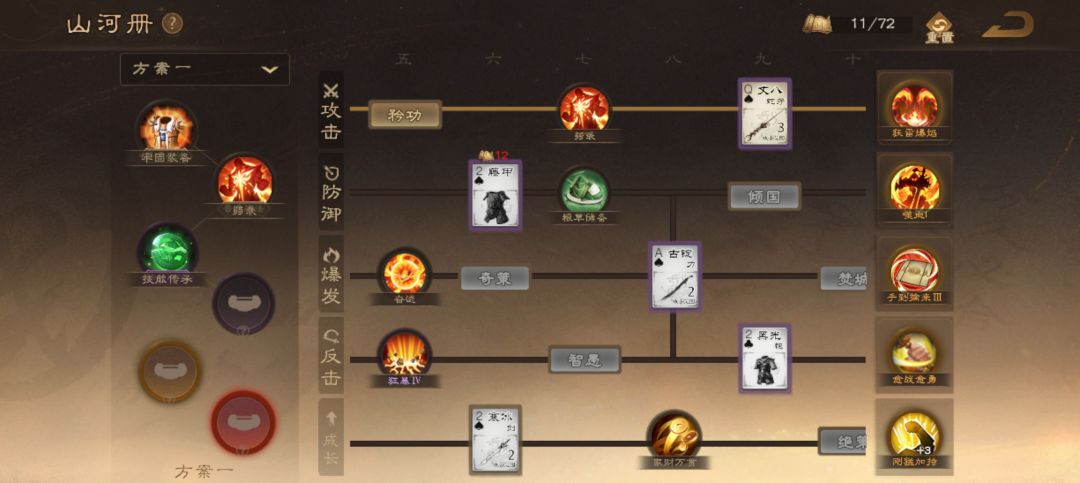 前期(0至200册)开局 以弱袭(体力大于手牌伤害+1)为核心,刷任务拿册优先(如袁术过普通1), 困难1的难度不小。 战法推荐 1弱袭,2装备固定,3初始技能 ----------- 中期(200至1300册)转远击(你与其距离大于1伤害+1)和弱袭双核心,配合初始队友卡距离加伤害。前期拿一个攻击距离武器装备,不然容易杀不到。 战法推荐 1弱袭,2装备固定,3初始队友,4远击之技,5杀造成伤害摸