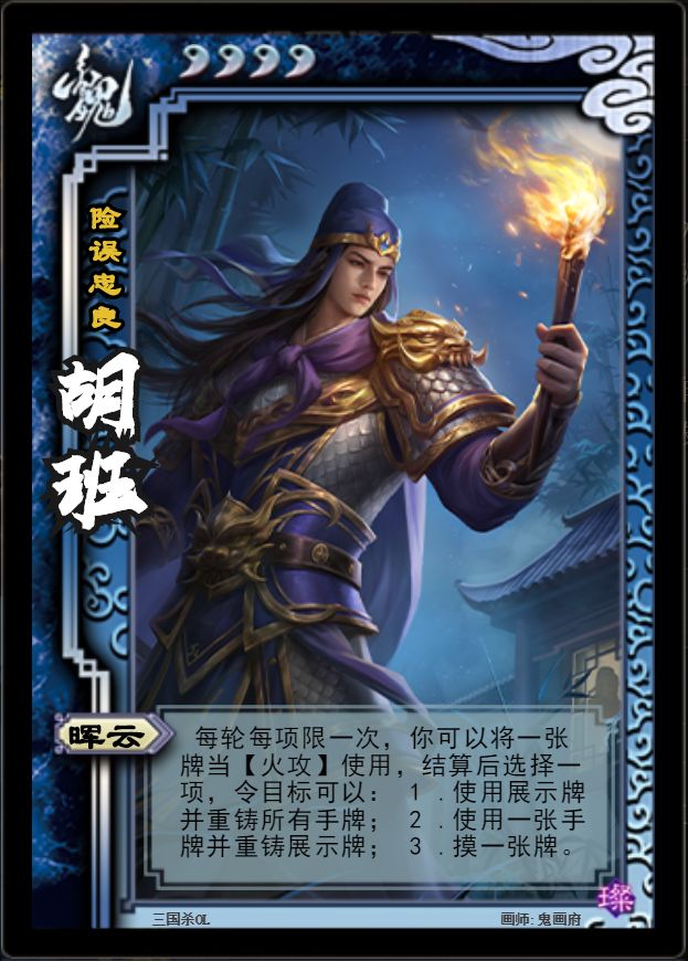 原创作者: 原帖链接:https://club.sanguosha.com/thread-1266738-1-2.html 微信搜索“三国桃园”小程序,更多精彩内容等你来看~ 之前在写的时候提到了火攻这张牌。火攻在三国杀所有的锦囊里面很特殊,有时鸡肋,有时又能创造奇迹。现在“善用”火攻的武将也挺多,如果说界卧龙和王瓘将这张牌的进攻属性发挥到极致,胡班则是把火攻玩成了一种辅助的手段。大家总是说火攻