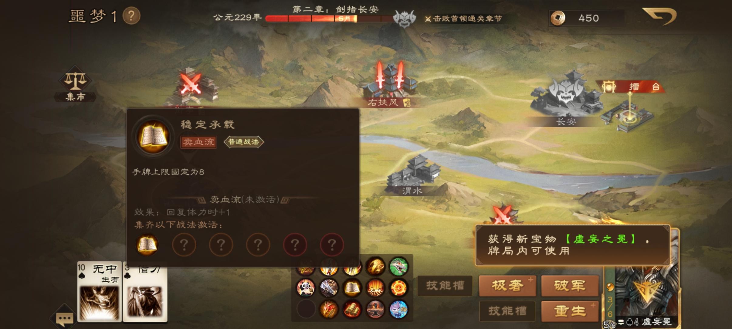 打到关底了,出来这么个boss,3点伤害跟挠痒痒一样,每回合回复两点护甲,失去牌就回血,完全打不掉血,要是没有别的额外直伤,那可不就干瞪眼了,只能右上角跑路