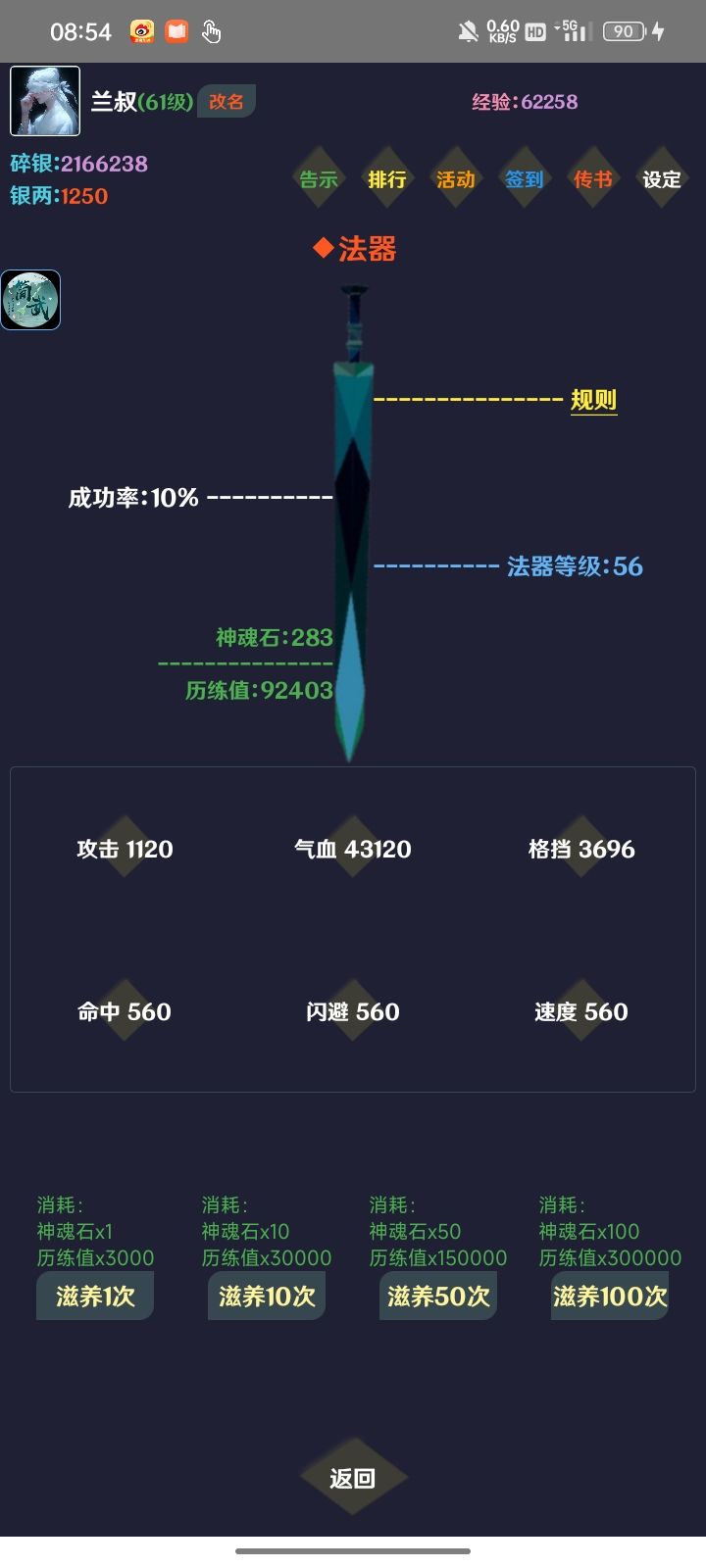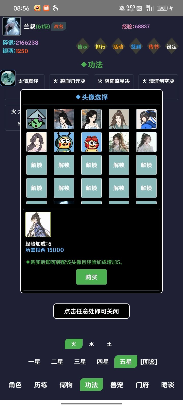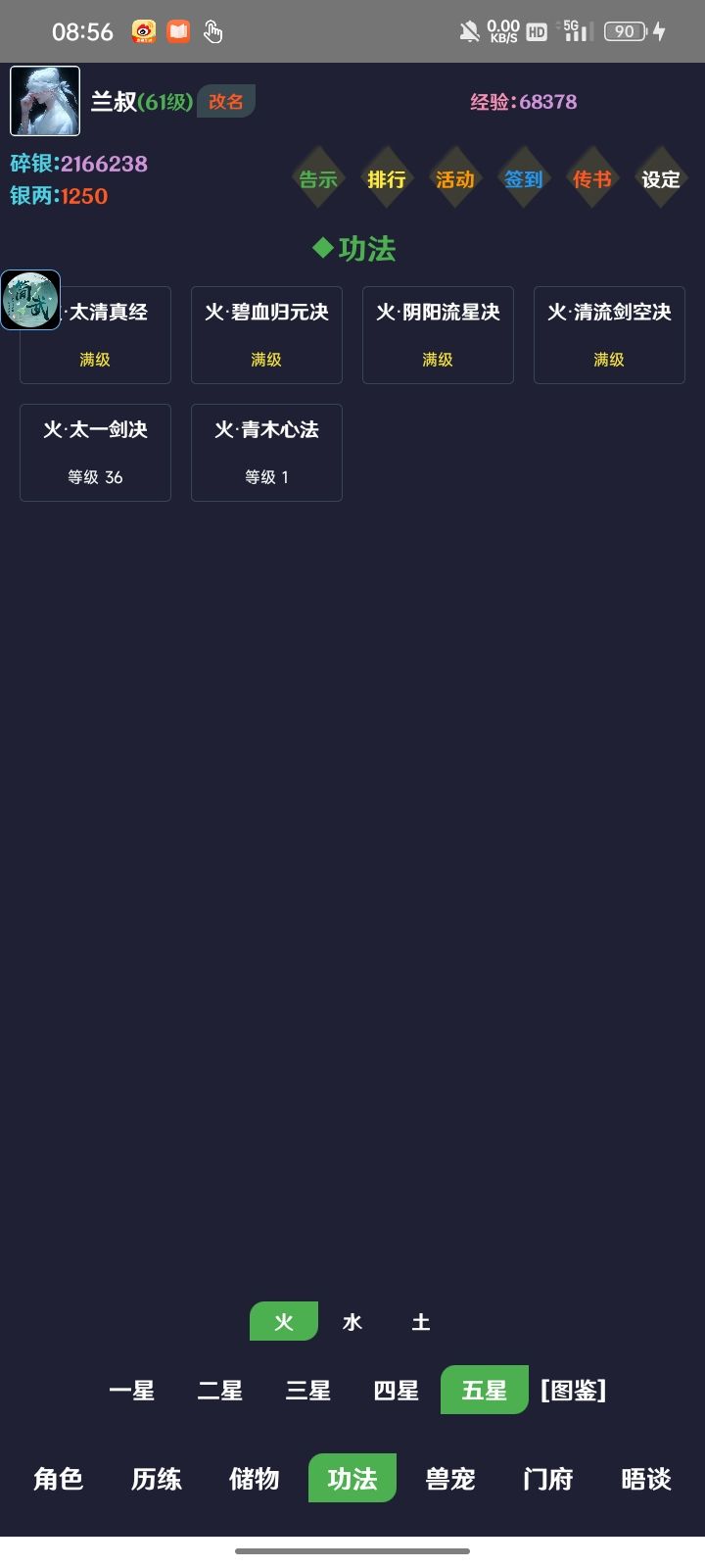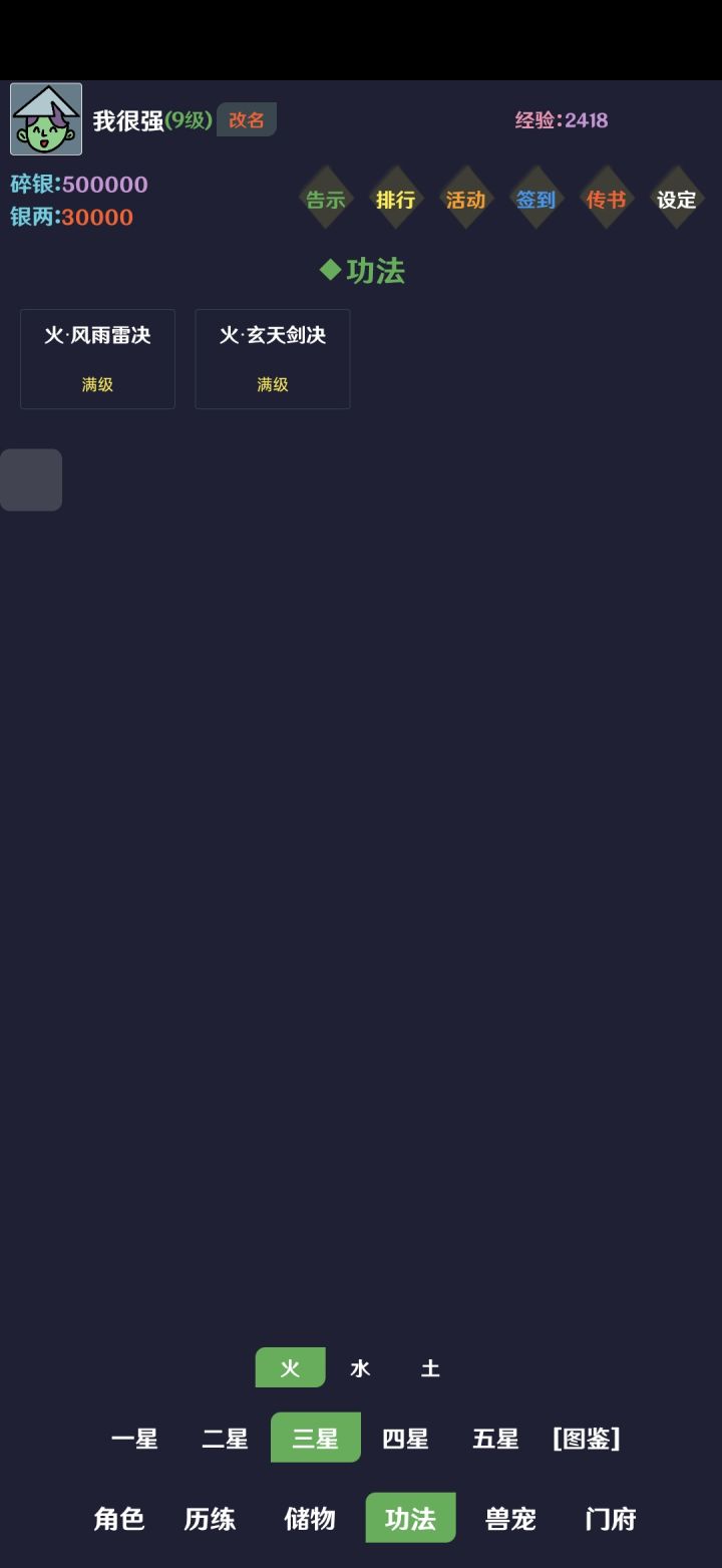 玩了两个来月,简单和新手讲下这游戏怎么玩。这游戏本质上是个数值对撞游戏,游戏内容就是提升自己的面板属性,有点像种田收菜。这篇攻略写于2024年6月3日,版本4.18,长时间可能过期。开局邮件先领一波,取个名字,然后去群里和社区找兑换码,去右上角设定换一下,先用银两在门府里坊市买两本五星火,一本上限攻击一本下限攻击,去下面储物栏里学习,去功法栏里把五星火升满,升满再点一下激活,加快推图。先刷一百个