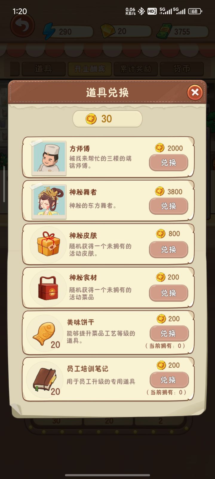 ①食材小菜:需要等招财猫给,需要的是客流量,你接待了多少客人,才可以领一次,需要注意一点,无法累计,收钱了记一个,如果你没开招财猫给的礼物(招财猫会亮起来,但不是很明显),你就给另一桌结账了,那就浪费了,他们吃饭挺慢的