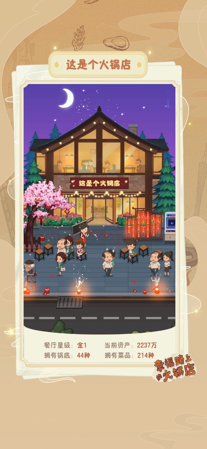 一款非常传统的模拟经营游戏,非常休闲,基本没有策略性内容,适合养生玩家。 ➊玩法分析:可玩性低,过于休闲 1)游戏开局有一段简单的剧情,大概就是玩家收购了一家铺面,开火锅店,然后有一位老师傅作为厨师,帮助我们把这个店开起来。 在可以招募店员之前,点单、洗碗、上菜、结账之类的都需要我们手动,不过这个过程很短,很快我们就招募到对应店员以后,就可以解放双手开始经营了。[一开始店员不够,想要加快进程也可以