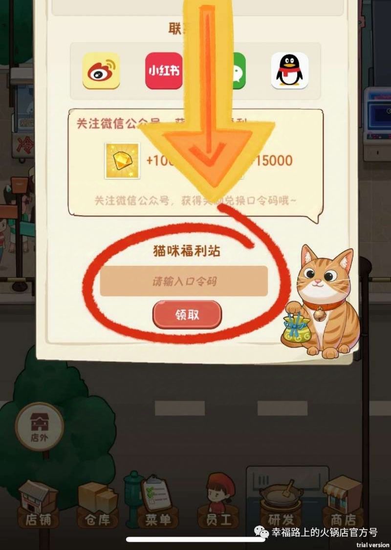 公众号兑换码:唯有爱与火锅不可辜负(100钻石,1500绿钞)截止日期:永久 元旦福利码:HNYHP11(200钻石,5组菜品研发三元素,1组锅底研发元素)截止日期:2025年1月5日 00:00